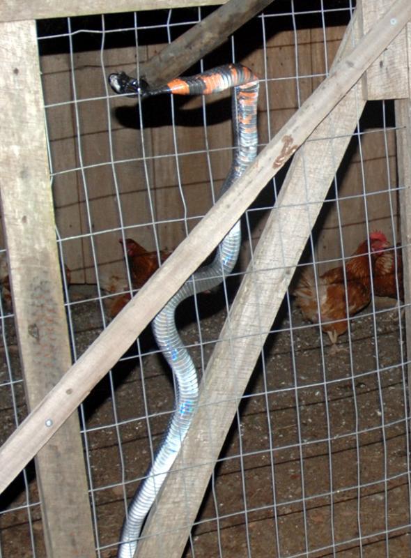 I really don't see what all the fuss is about. It always seems to me like people react the the idea of a snake with such horror and am immediate knee-jerk reaction to kill it. Did you know that more people die from snake bite when they're trying to kill the snake??? I'd start by improving the fencing around your coop and run. Judging by the size of the wire, it's way too large to keep most predators and vermin out! A snake can inch its way through wire gauge of less than 1", so get rid of the larger gauge chicken wire if you can and replace with something around 1/2". You could always keep the existing wire in place and attach the smaller gauge wire around that, but you must make sure that you snake proof the area as much as possible to make it safe for your girls. Too many people make the mistake of using large gauge wire, and it just isn't up to the job of protecting your girls or their eggs.