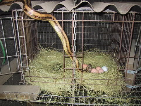 One other thing.....please do not replace 'real' eggs with artificial glass or wooden ones to 'out fox' the snake! A snake's digestive system is unable to process these obstacles and invariably they die a very slow and painful death. To do so just makes me question why it is that the human race is so meaninglessly and wantonly destructive.