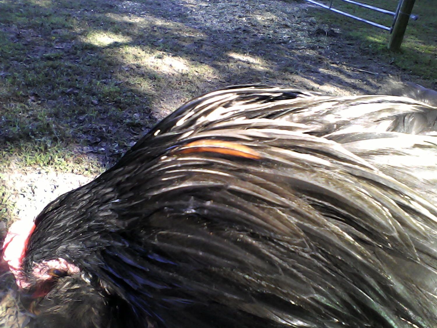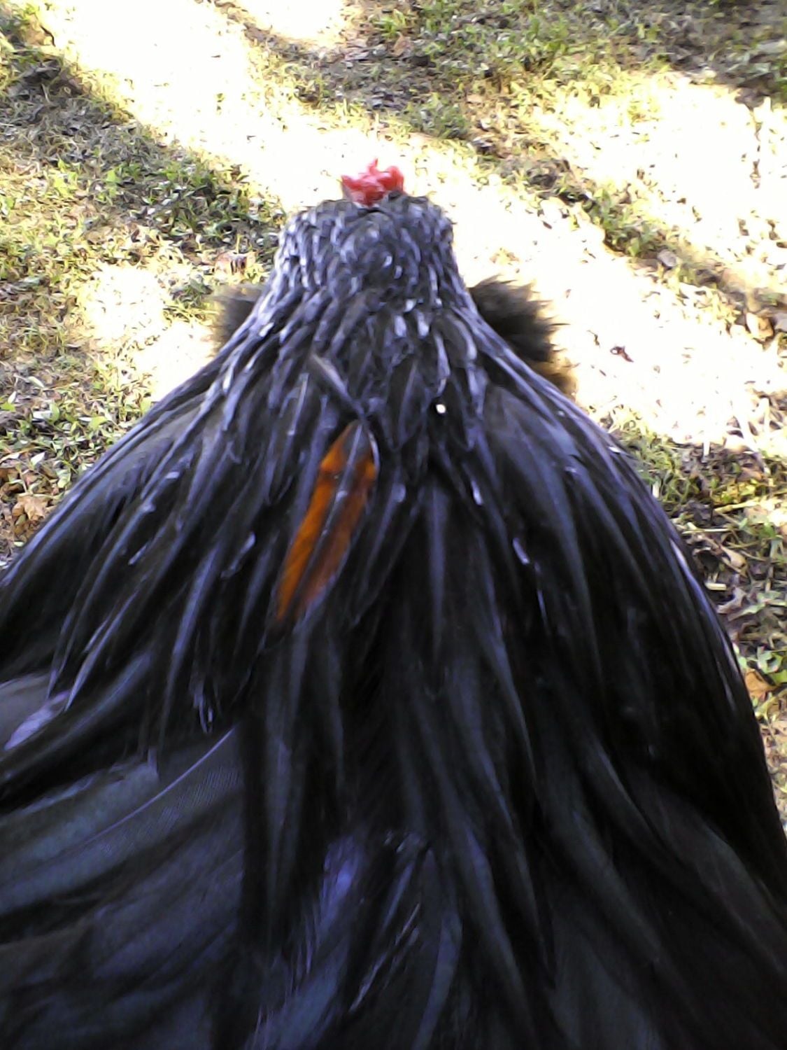 I have a bizzar question. I posted not long ago about my black Ameraucana drowning and being brought back. On the heels of that he molted and low and behold on his head is a crimson red feather. Now I wonder could it be from the stress to his body when he drowned like when people go through a trauma they get those white streaks in the hair?