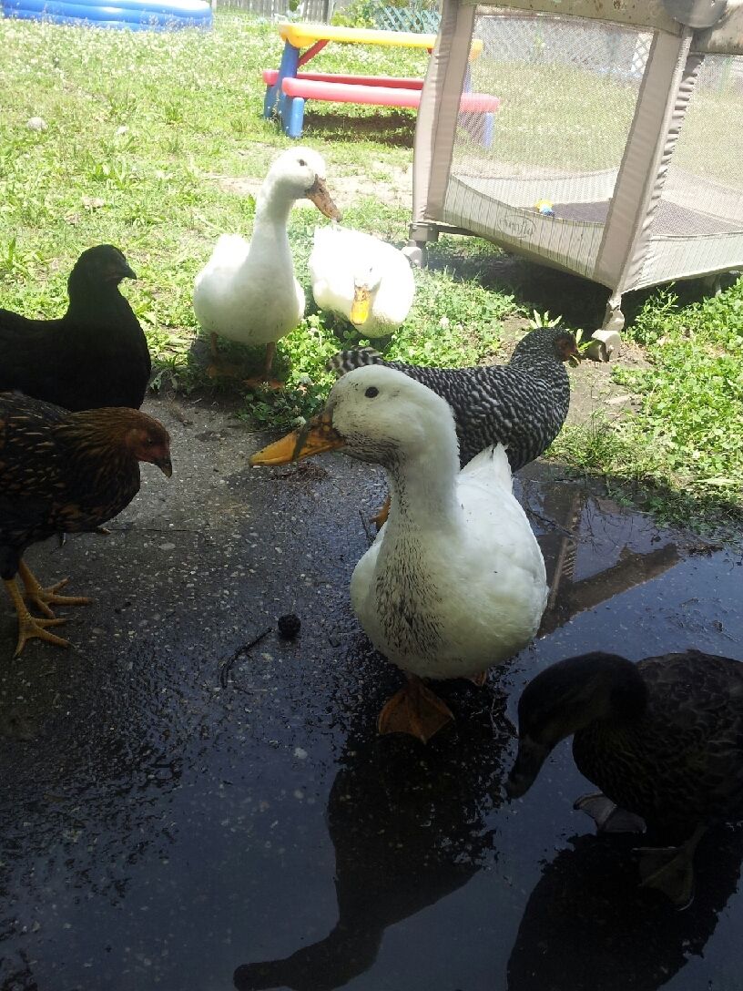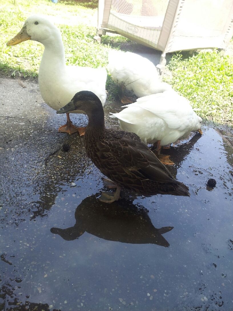 My drake, Jasper, after playing in the mud. His drake feathers just came in, they are tiny, but at least now I know that I have one boy and two girls.