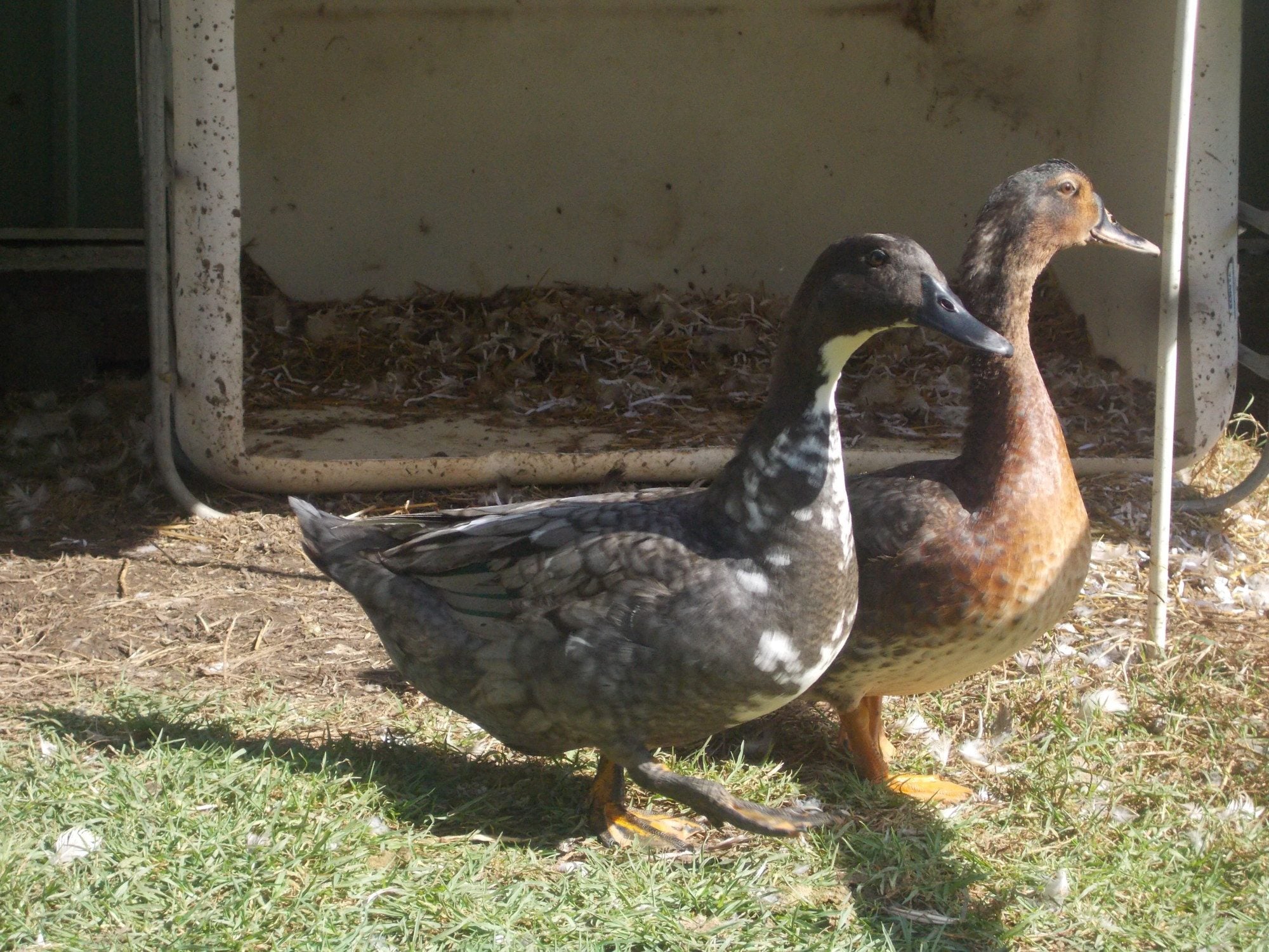 I'm trying to find a home for my friends ducks but i'm not sure what type they are,could anyone please help me? my friend was told they are muscovys but they are clearly not muscovys, could they be some kind of cross breed? i have never seen ducks like this before