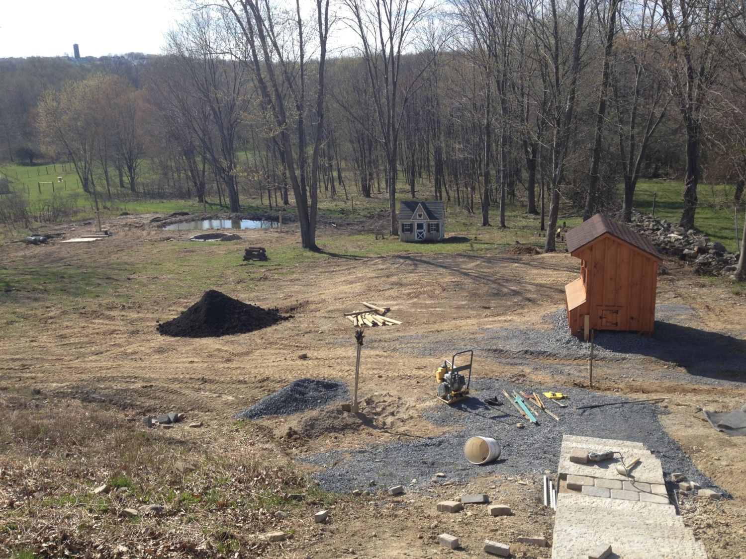 Getting the bones of your garden going looks like a lot of soil preparation, possible fencing, and pathways. You need a dry pathway to the coop and a more rustic pathway to the forested/pond area. I can't wait to give you plant suggestions. Holy Carp! What a great setup.