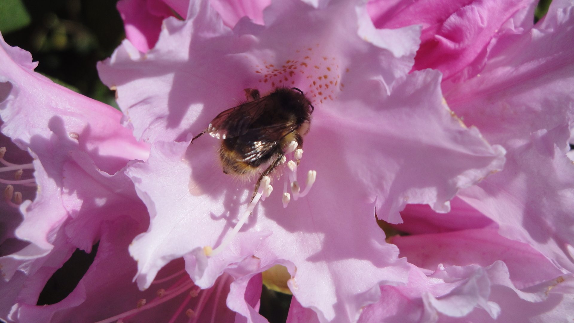 I could only find two in my folders. Taken last year of a bumble bee in a Rhododendron blossom.