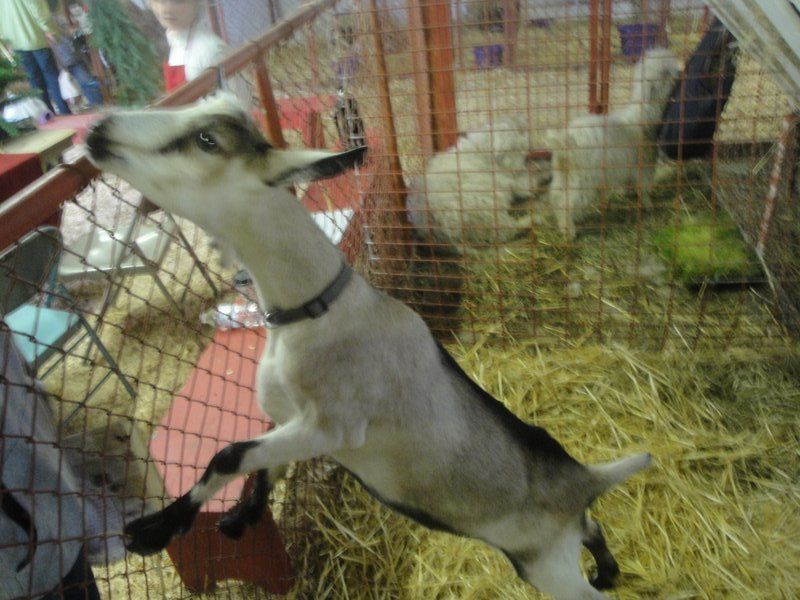 This sweet little goat is Ilene. I just liked how good she could stretch. I voted for her in the goat barn.