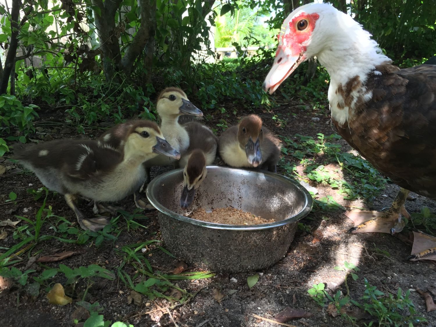 First off, I'm very much a novice when it comes to ducks and the ducks that I do kind of take care of are feral/neighborhood muscovy ducks. Momma brought her ducklings around several weeks ago and at that time they were probably only a couple days old. I live on a canal with a seawall so if the ducklings fall in they can't get back out and I've rescued the ducklings from the canal twice.