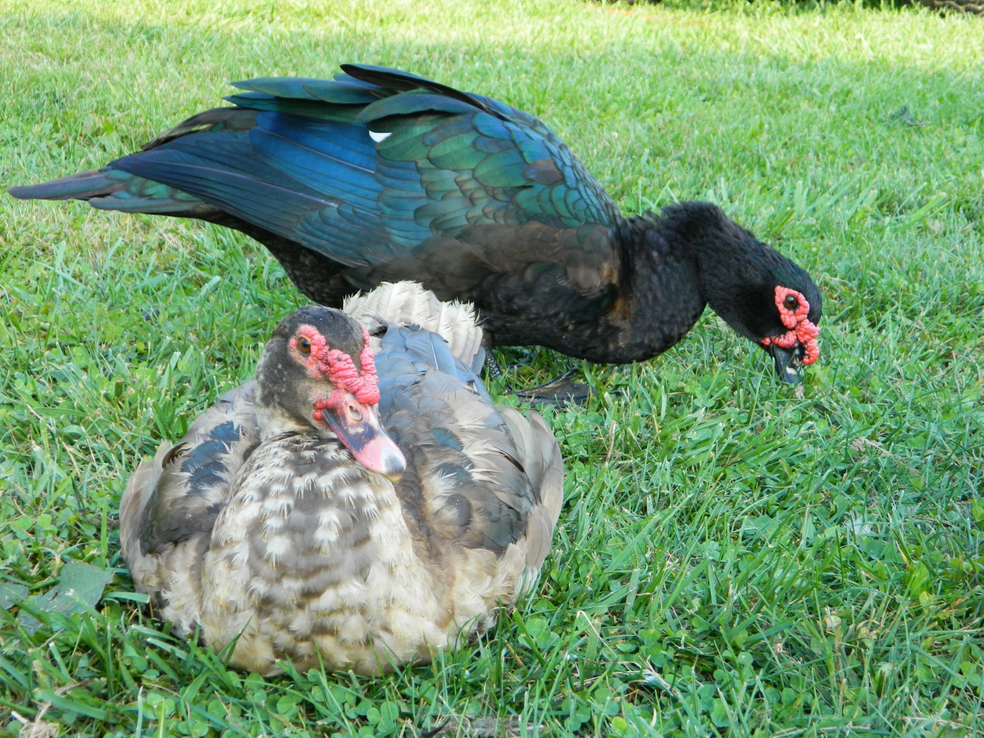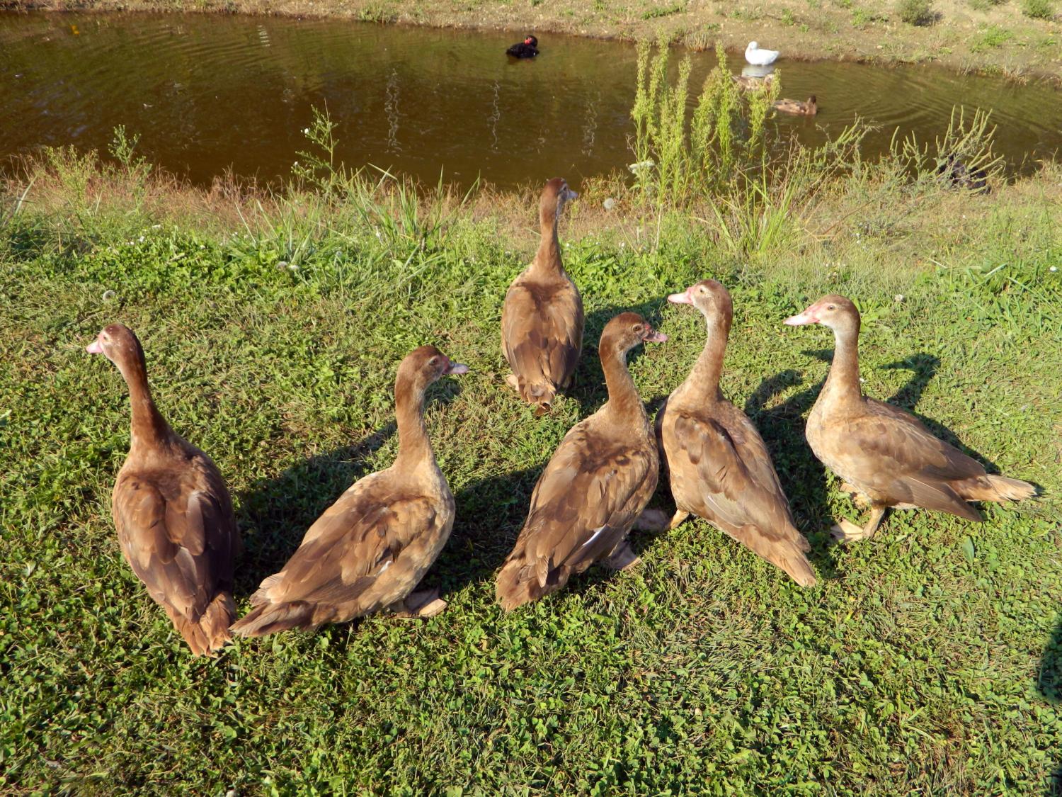 I've just had Muscovy's this year, got the first ducklings in spring after seeing some chocolate Muscovy's at the poultry show. Mine are ages 3 months to probably 7 or 8 months. I started with a Lot of ducklings and have sorted down to a manageable number, 8 more sold and leaving tomorrow. What I'm keeping will be mostly chocolates and a couple of blacks, all solid with only the white on the wings as the standard calls for.