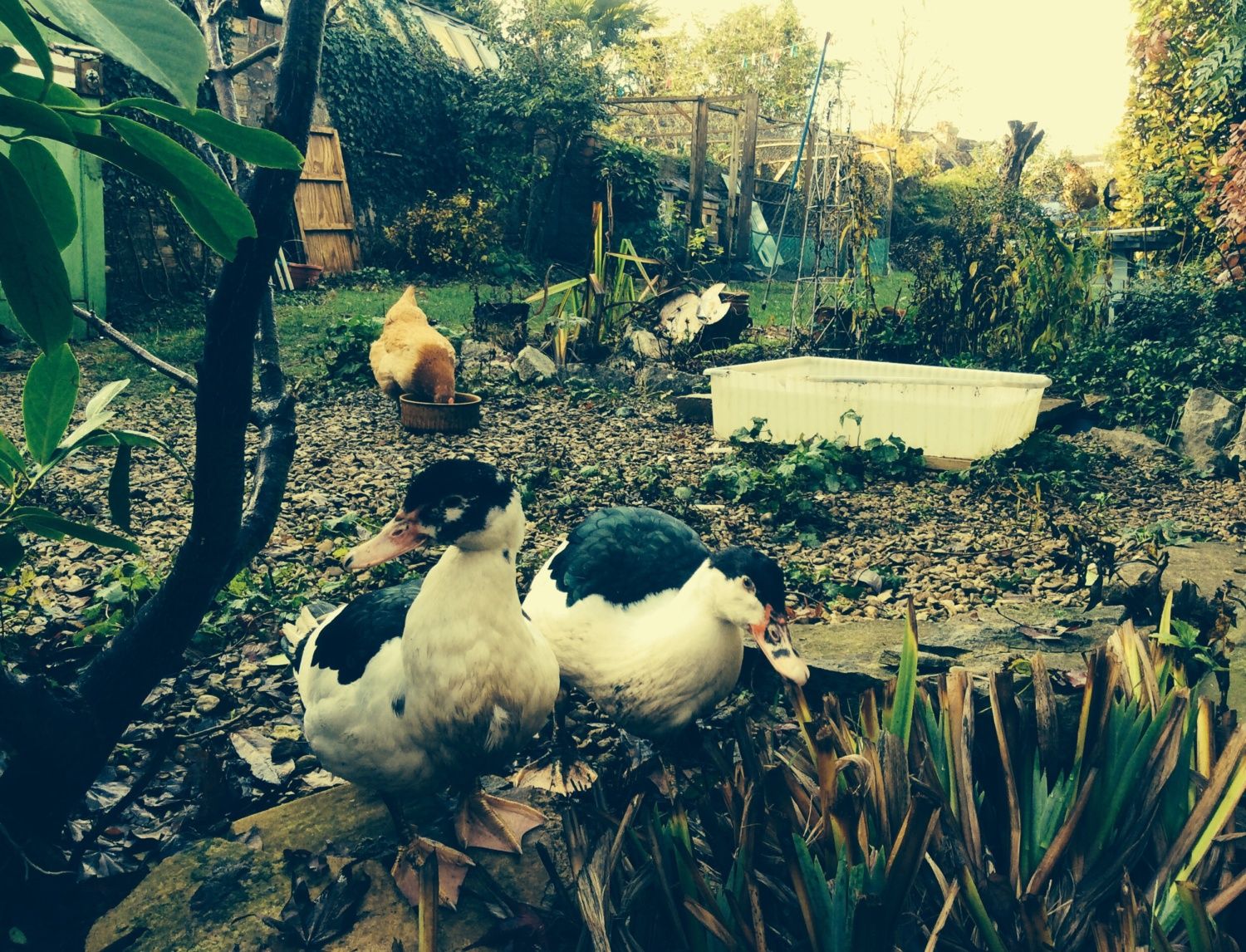 I let my chickens 2 Muscovies, Charlie & Nella out this morning for breakfast.