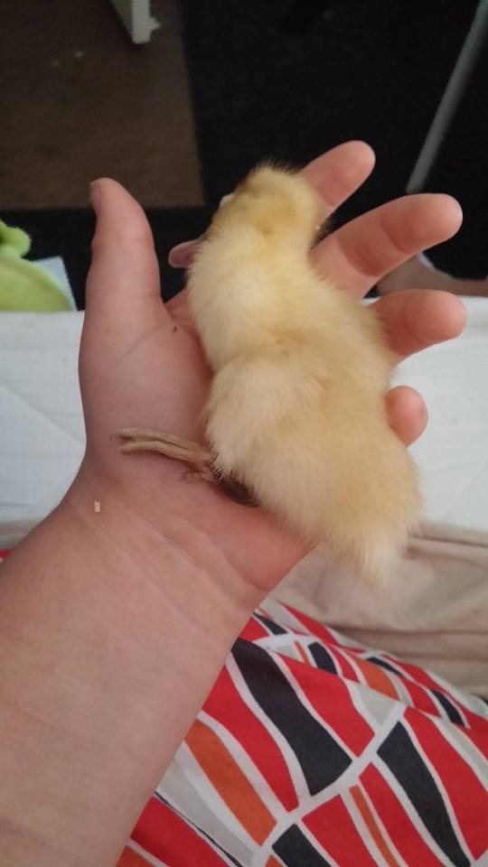 Where have you been keeping him? he isn't in with the adults? sometimes adults can be pretty rough on babies if they aren't theirs. Take a towel shape it like a donut and place sheldon down into it with head up this will help to prop his head up. Keep him quiet but offer food and especially water often. Do you have poultry vitamins,electrolytes/vitamins?when i went out to let them out as its 8:45 am, the ducks started banging on the window and when i let them out sheldon didnt come out so i went to check on him and there he was on his back and when i picked him up, he didnt move his head at all, just laid there slumped. i really dont want him to die, he can move it abit but looks more like he just went into shock when he moves it