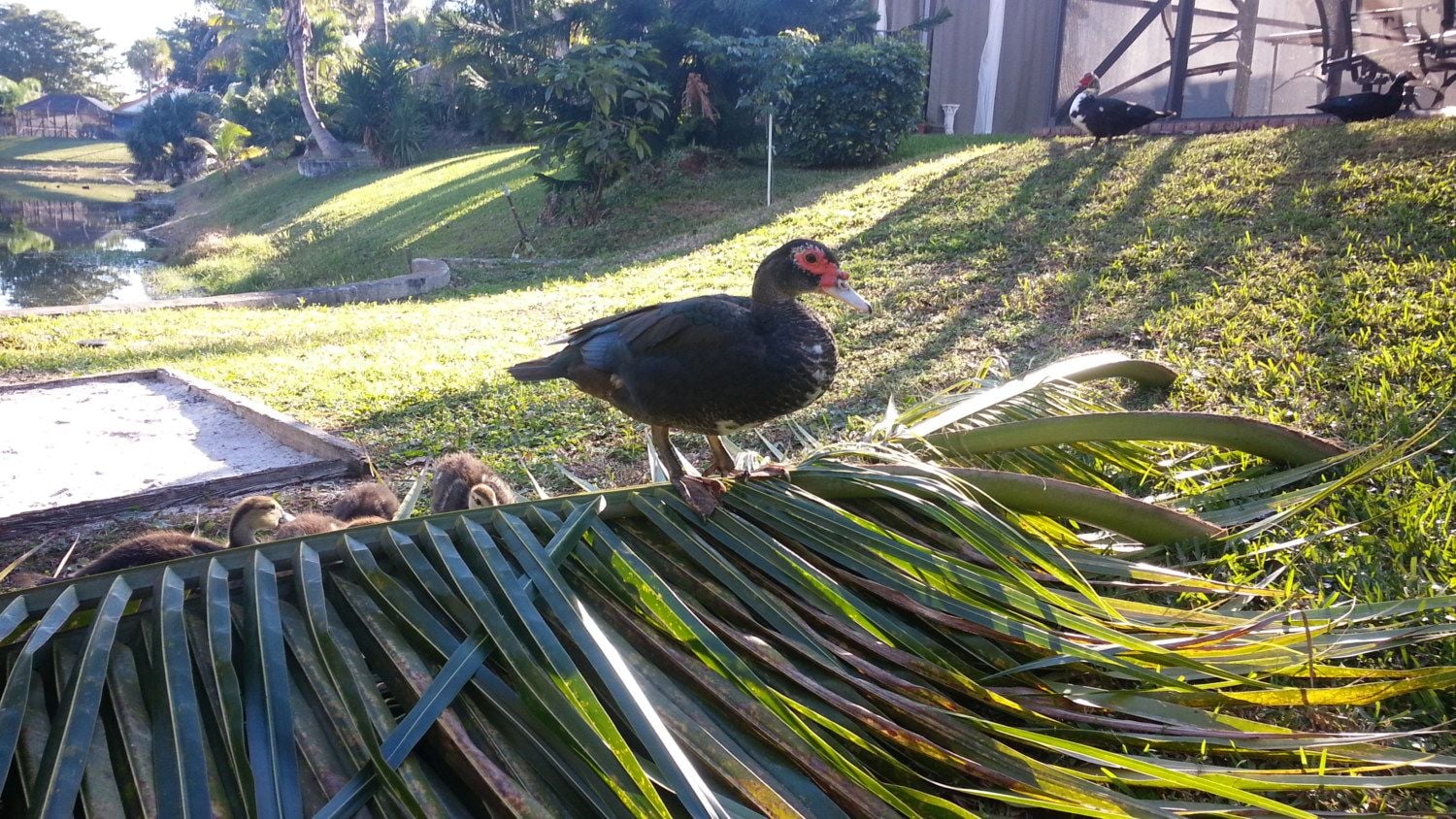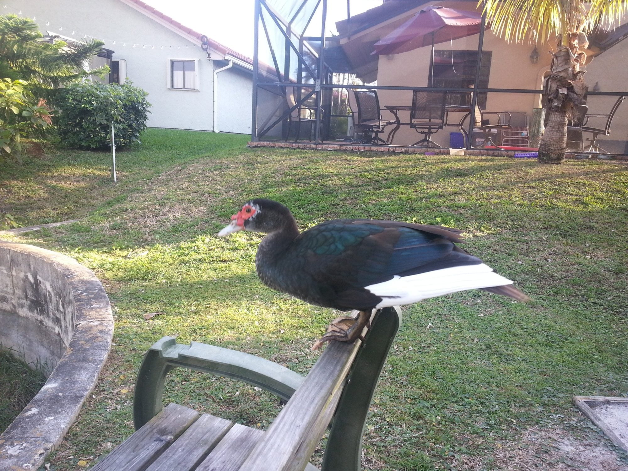 Where there a will there's a way, My youngest drake decided to try his wings yesterday right before dark, need less to say I had to go down close to the river, thank goodness he didn't fly into the river I probably wouldn't have gotten him back, But he looked so scared he willing walked ahead of me back to the house. I am clipping a wing today.