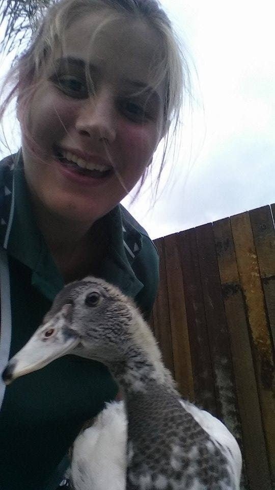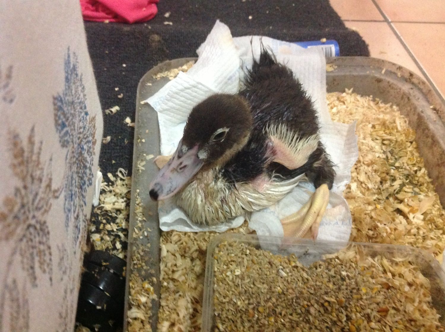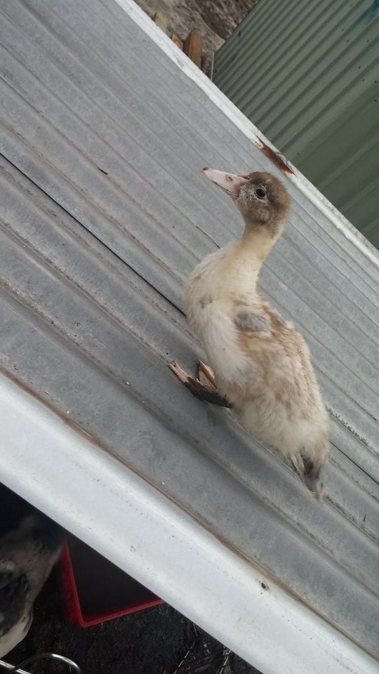 On the other hand I just went to lock the ducks and I hearses them as usual to the pen after a minute they all ran out fast I went in to find this bird stranded in