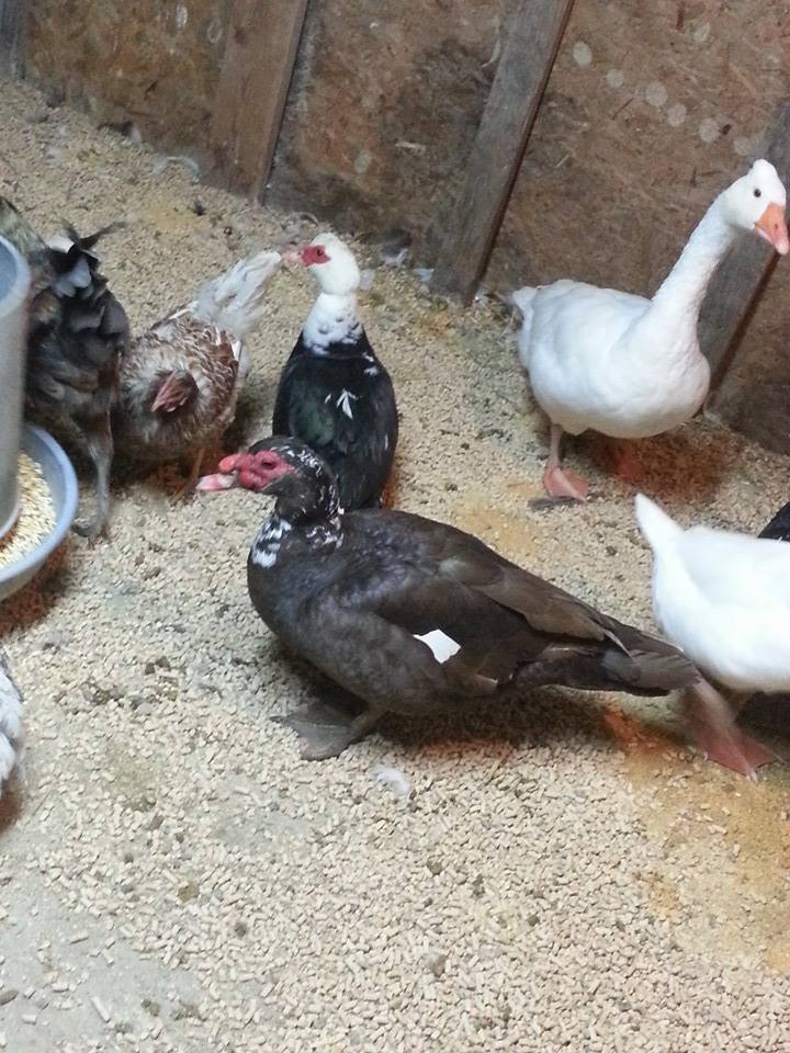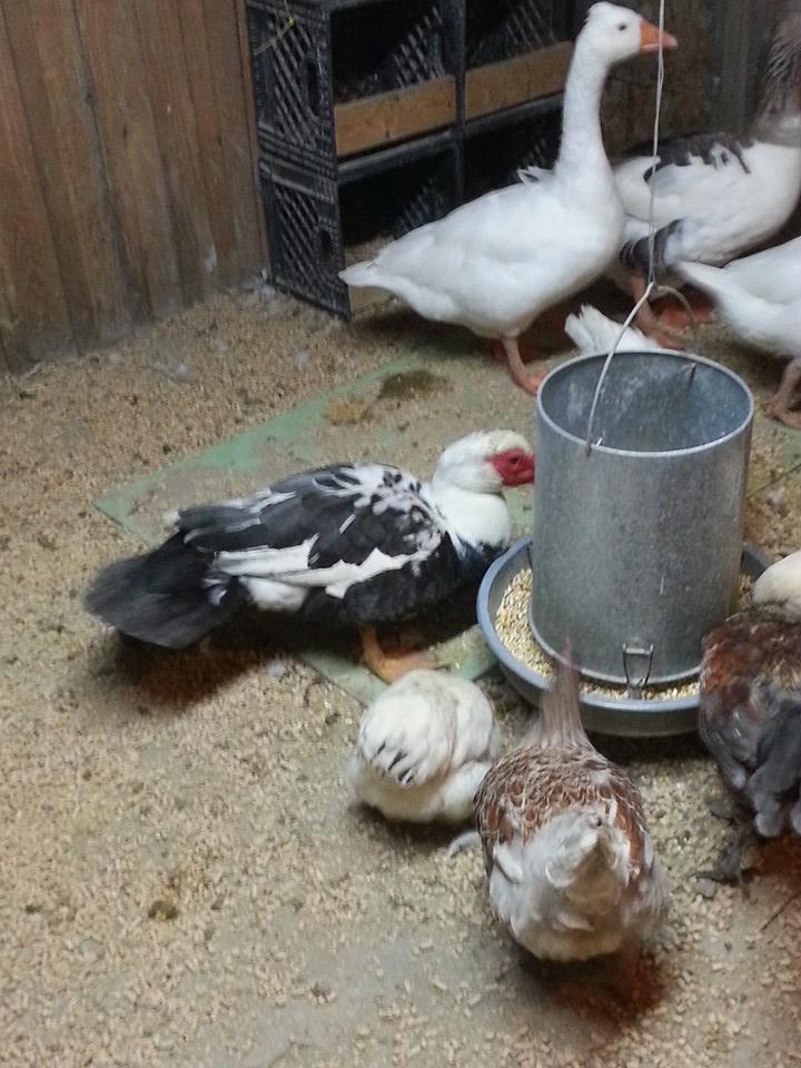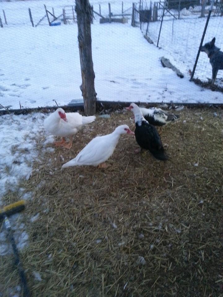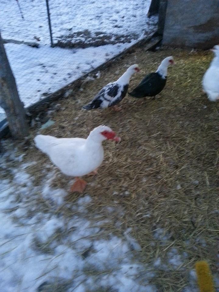 I noticed the one with the poof on his head the most. What a bummer that they are such bullies. Is it bcuz they are so big. I hope they don't harass the scovies too bad. Hopefully where you live winter will end soon so that your ducks will get some relief. I am in Oregon and we are not having winter like the other side of the country. Bizarre.wait which one lol there is a Chinese goose a roman (poof on head ) and a Pomeranian goose .. but I do have two solid white muscovies .. ? the pics outside are ducks the inside the coop pics are geese (white ones and the white and brown guy)