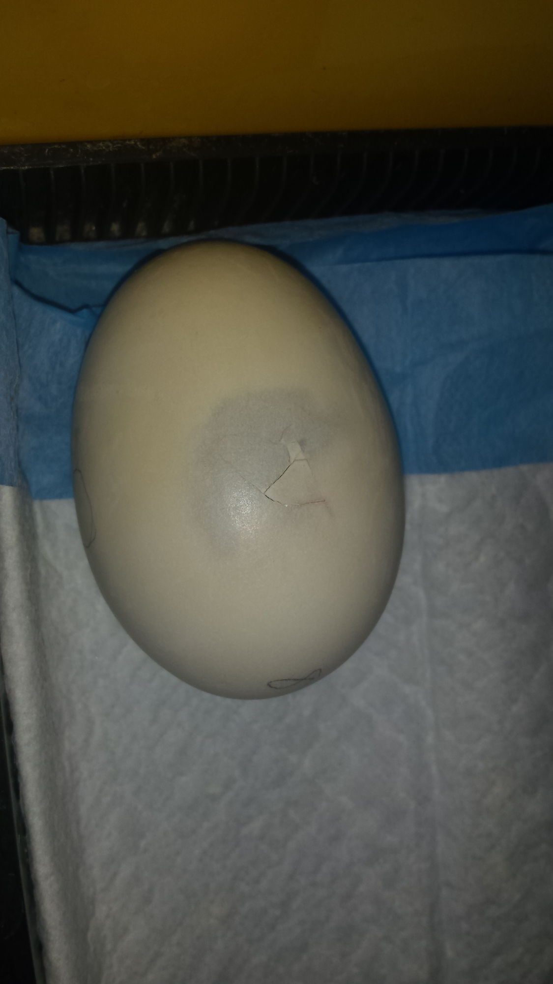 One of mine, my first egg to hatch came out the wrong way and I had never seen an egg hatch before let alone help. I just followed the instructions on the goose egg hatching post, wrapped in saran wrap, made sure membrane was not dry, tryd to avoid picking at it and help, as long as there was a hole to breathe in the right spot let him take his time. I kept him in my bra cause i didnt have a brooder. He did just fine. I was the nervous wreck.