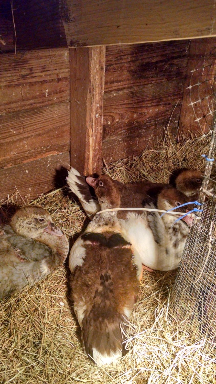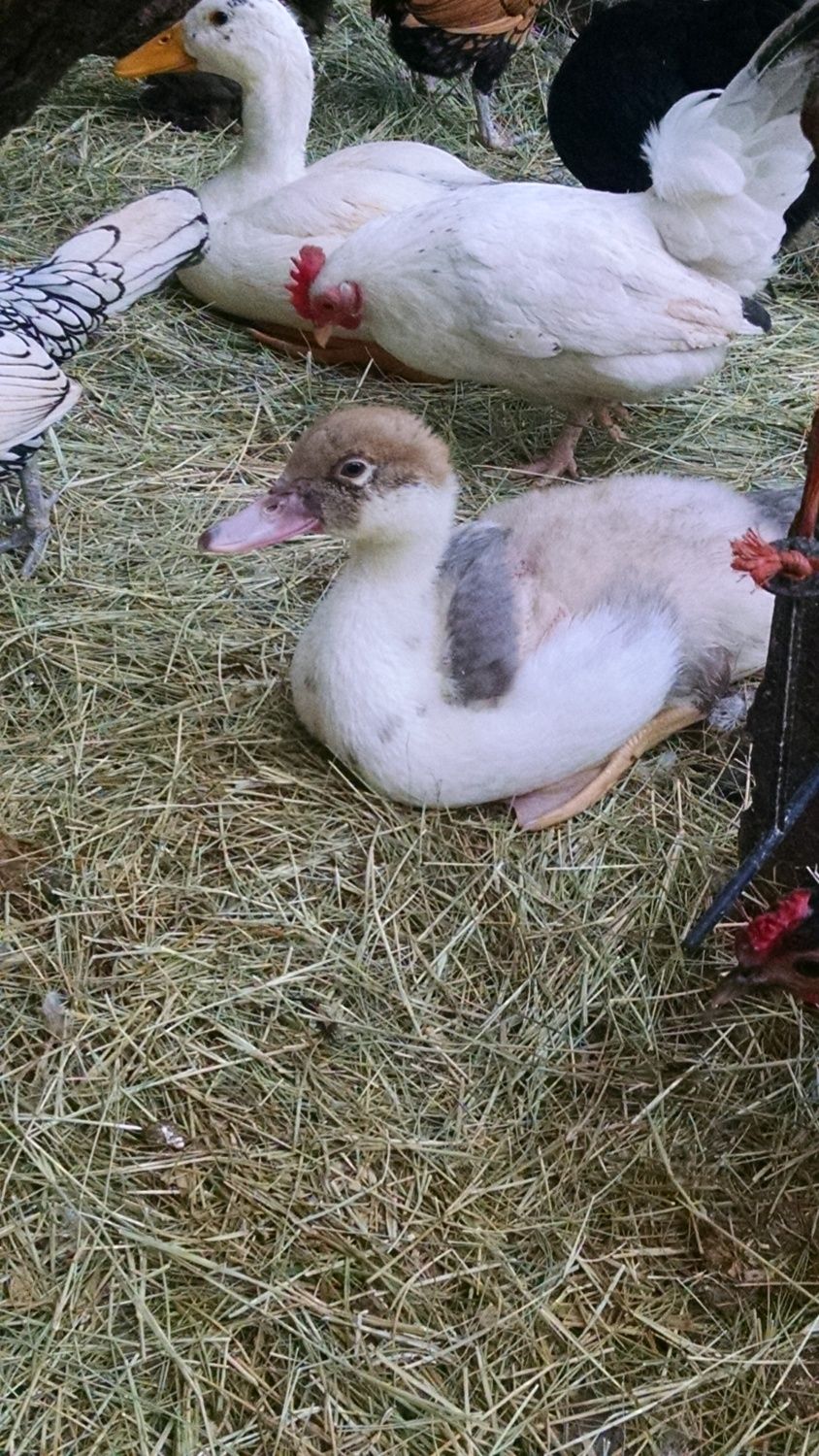Oh Muscovies can inherit traits from deep with in their heredity, white can pop up in blue parents or even black premed it just means somewhere in the line an ancestor was either white or pied