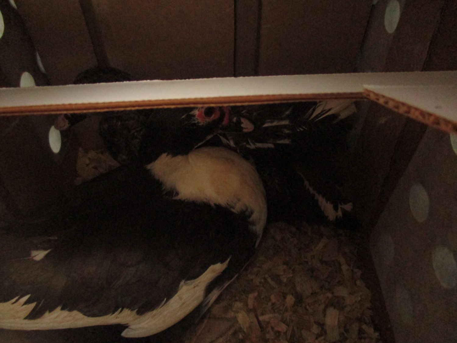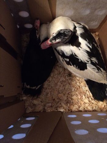 Also the pictures of them with my Muscovy's was in the morning after getting them home from post office. Their tub has been rinsed out and refilled for them. We had a bad wind/ tornado storm the past couple of days but all is good now!