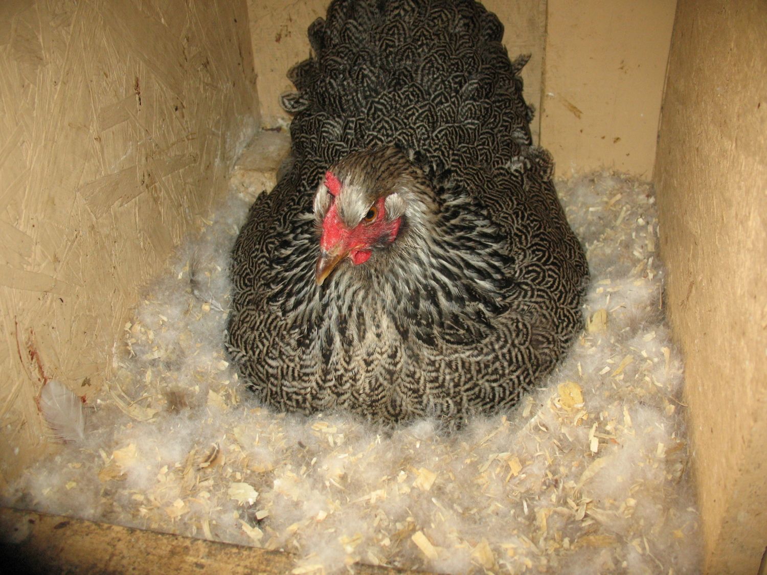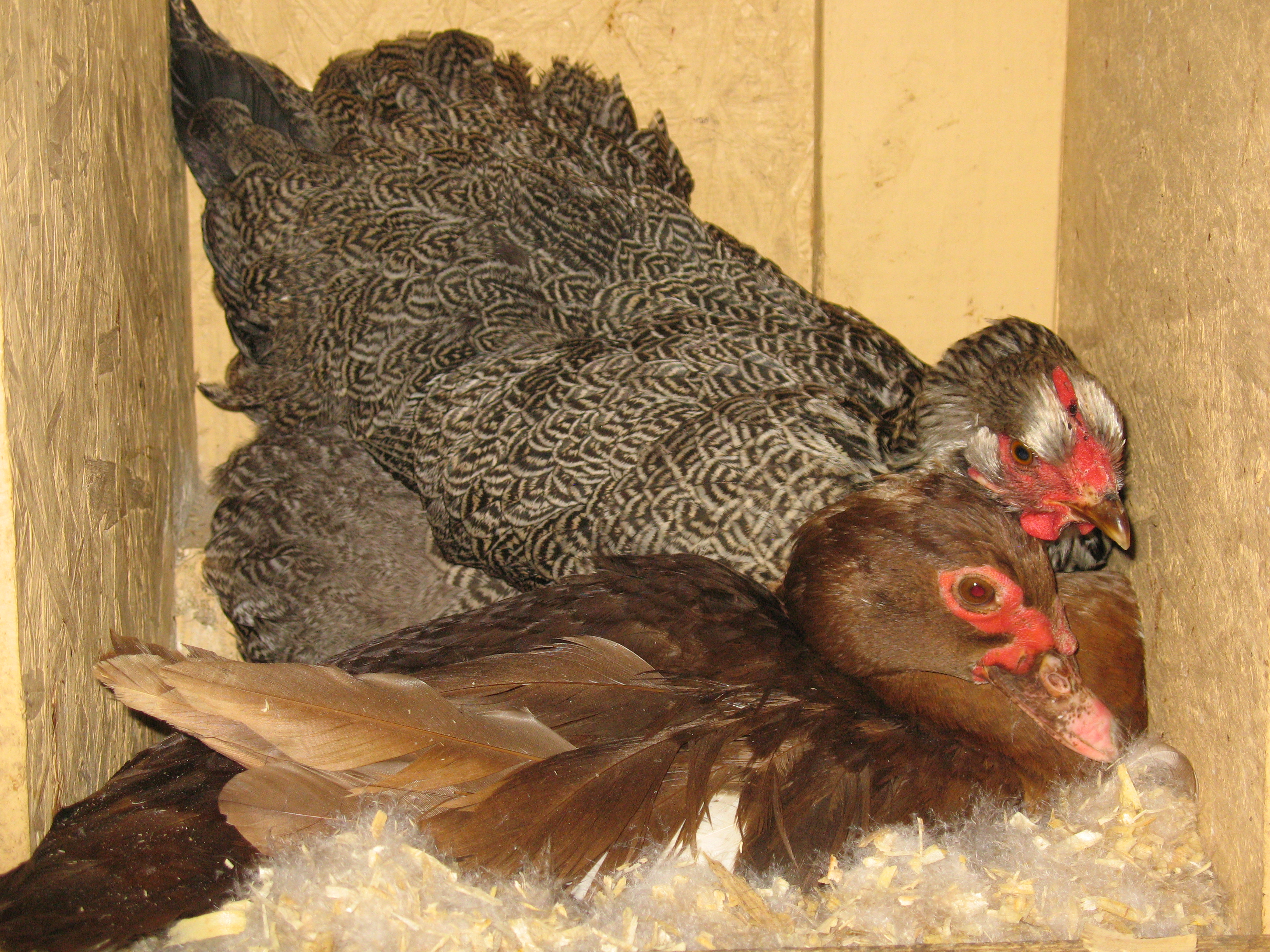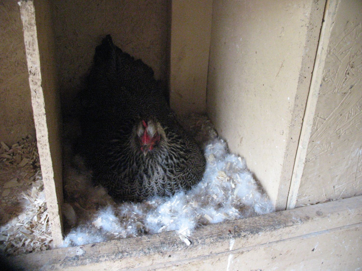 Isn't it funny how there can be other nest boxes BUT there is only 1 Nest box. Looks like someone is very serious by the looks of all that fluff in the nest.I'm not sure if i shared these pictures here yet or not but I'm going to. We have a battle going on, all over one nest box. Cocoa and Ebony have both worked on padding it up for themselves but my resident broody hen always uses this box to brood. Her last baby is 10-12 weeks old so she's ready to sit again.