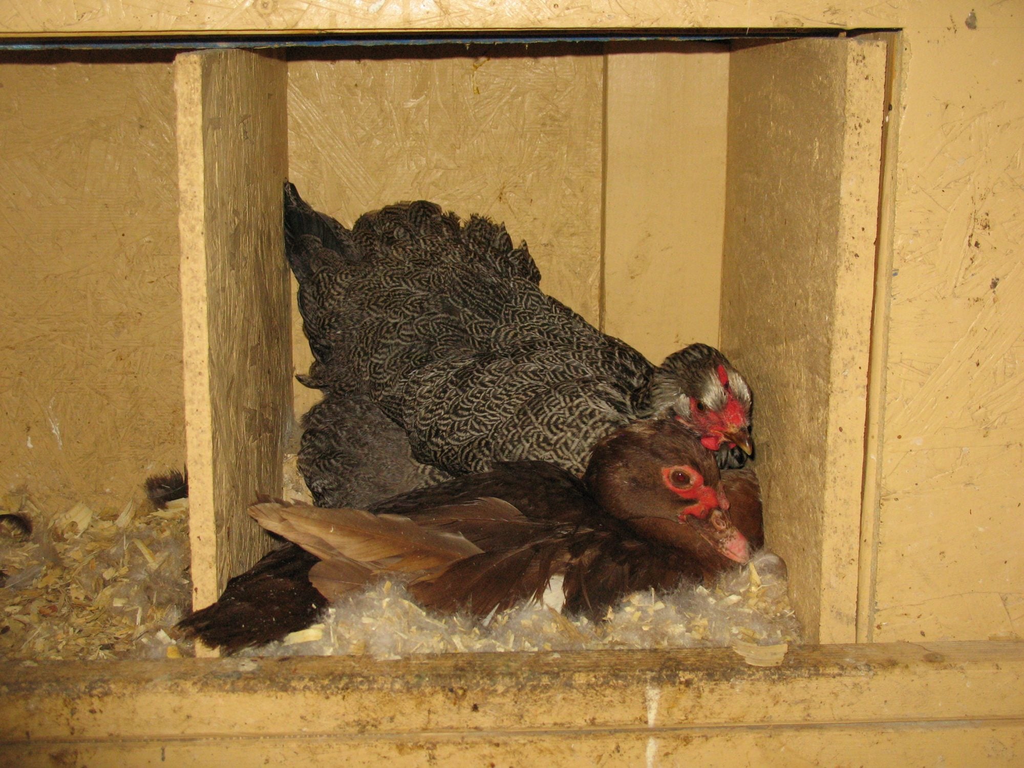 Ana claimed the cushy duck nest for herself and Ebony was stuck wandering around outside. But, tonight, when i closed up the coops, both girls were in the box together again so well see what happens. I will NOT be giving them any real eggs lol