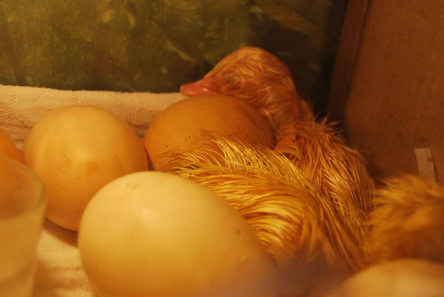 Nearly every egg was pipped or crushed. I grabbed the most affected and could see the babies still alive, so i rushed the worse 5 up to an incubator that had hen eggs in and placed another 6 under a broody hen ( on her first day haha) and left the rest with mum. All night nothing, nest morning nothing till around 10.0 am. All the incubator ones hatched within 15 mins of each other and the hen ones a little later. It was well into the afternoon before the mums eggs hatched. I had to help them too as they seemed to be shrink wrapped. All but one egg hatched. On opening the final egg we found she had twins and that why it didnt hatch.. Fully formed but unable to come out.