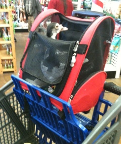 She is absolutely adorable, I bet you have alot of different reactions to her, it's not normal to see someone with a duck in their back pack a dog on a leash a cat in a carrier but not a duck in a back pack. Thats so cute. I took my duckling last year in a cat carrier to the nursing home for pet therapy he was a big hit.I hope that's her happy sound. She does it a lot.It's her backpack/carseat/carrier.![]()