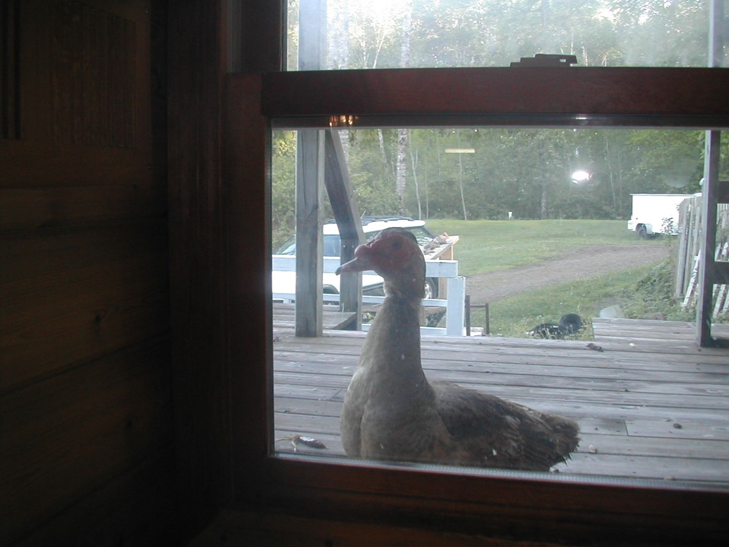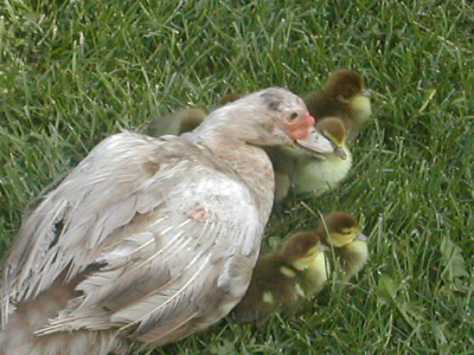 He's not too interested in her,he'd always rather play with his toys. She just watches him & laughs her muscovy laugh at him running around,especially when he falls or drops something. I'll have to record them sometimeHe's a cutie pie. How does him and daisy get along?