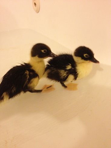 Here is a updated picture of my beautiful little babies (that are currently my house ducks)! This is a pic of their first bath! I fill up the bath and give them a swim each day when I clean out their brooder. Super cute (messy) things they are!