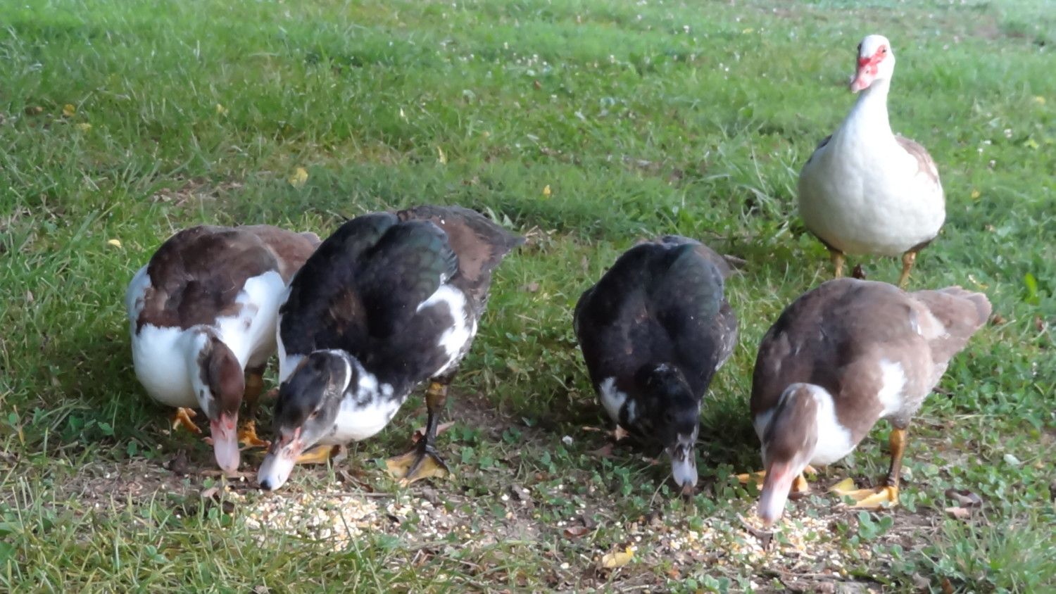 Ahhh...growing up Muscovy. We are enjoying this family so much. In hopes they stick around this fall and winter, we are providing duck houses. Now that this set of babies are so big...I am hoping Duchess picks a house and starts her next family. I love these ducks and the tail wagging. They have so much personality and are pretty to look at. GO MUSCOVY!