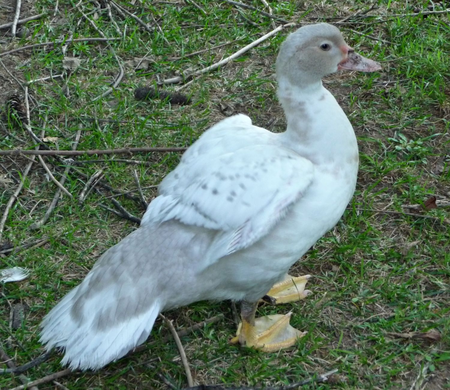 I picked these two sweeties up today. I posted somewhere else on this thread then saw this place. So my dear 'scovie experts, can anyone tell me what color these two might be? There's a multiple choice in parentage from browns, blues and black and white. There was a gorgeous tan and brown (mostly tan) drake that I'm hoping is the daddy of the one on the right. They now have names, the one on the right is Goldie and the darker one is Honey.