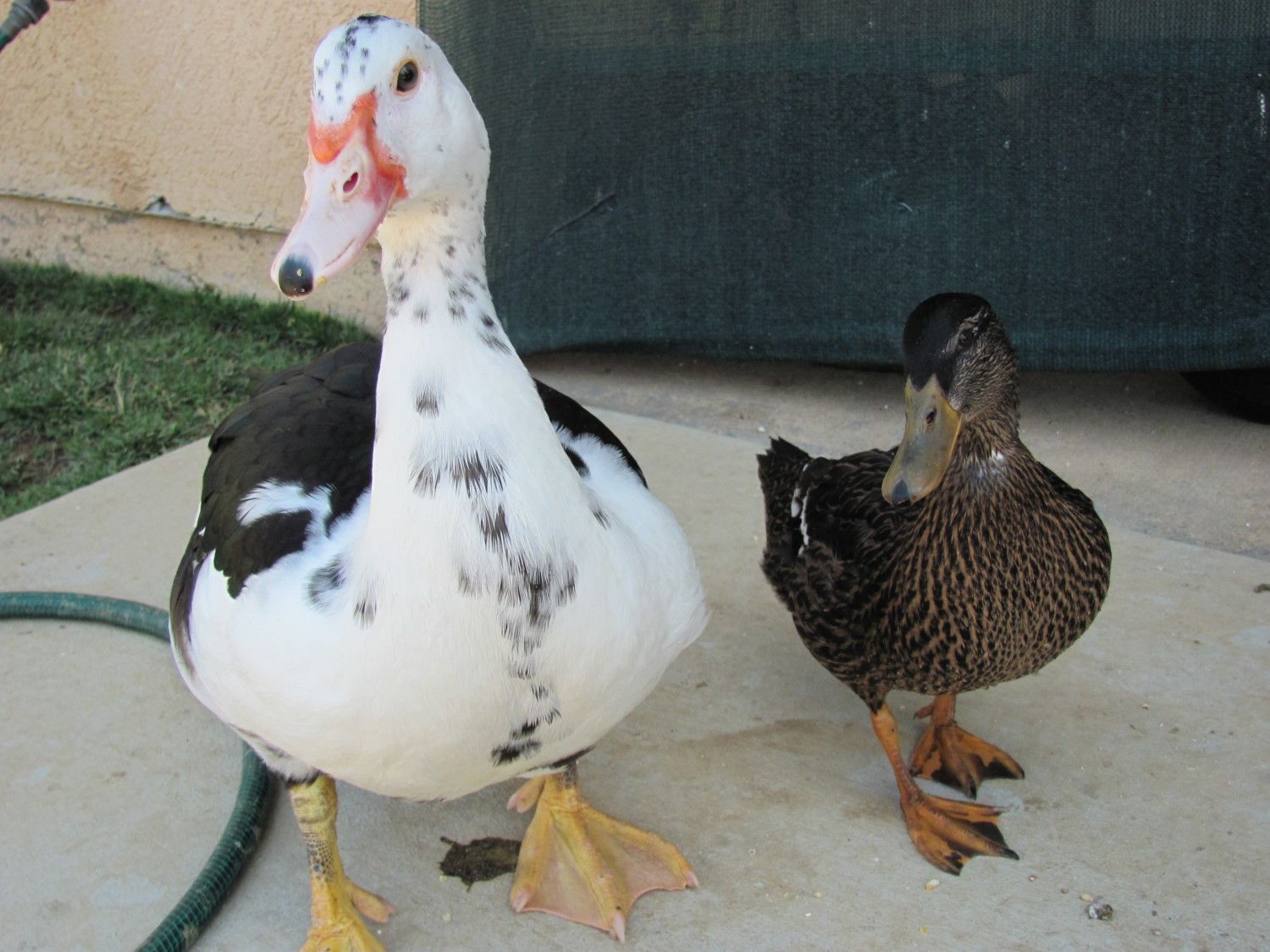Scooter (Muscovy) and 'Ling (Mallard cross ?)