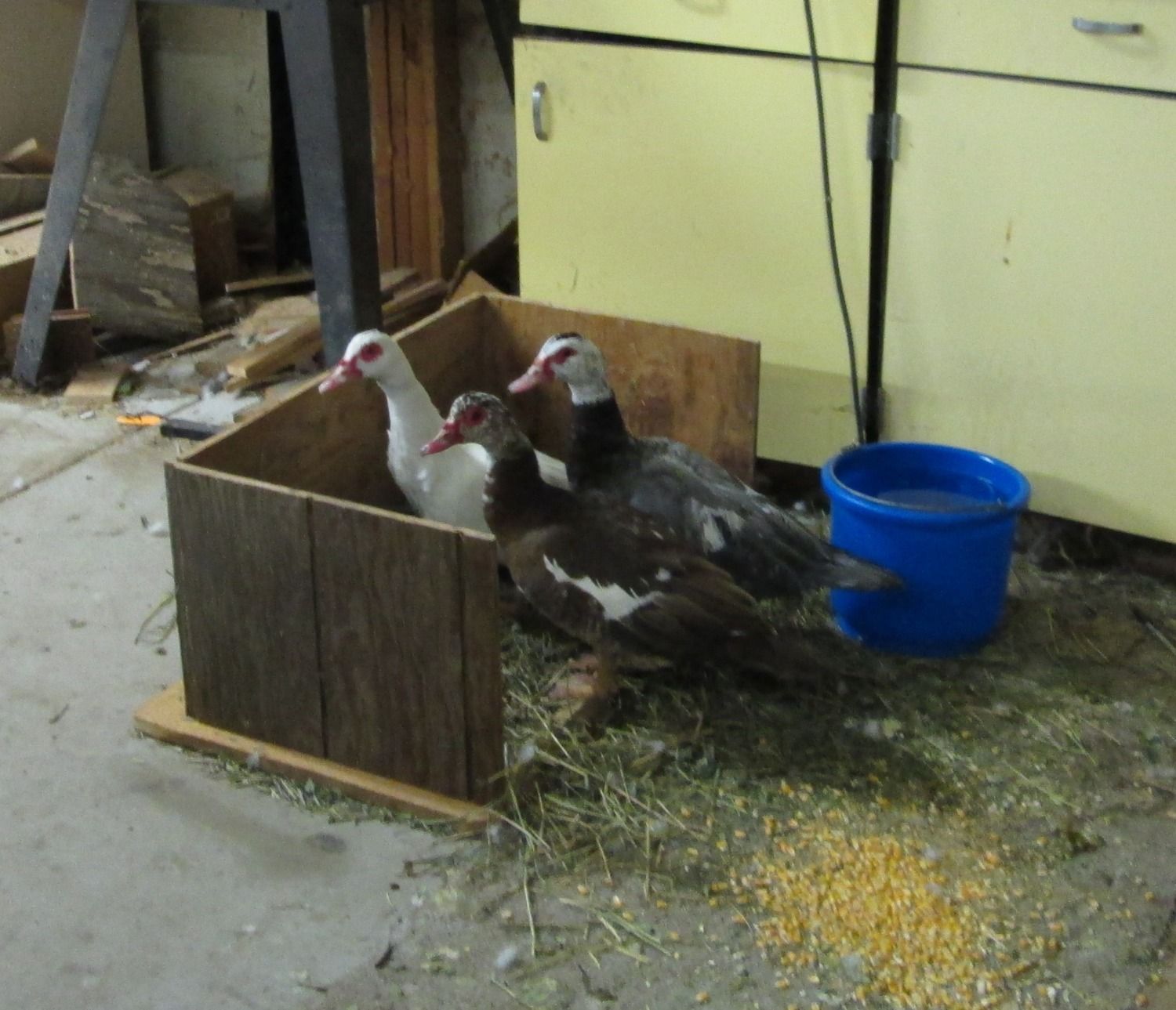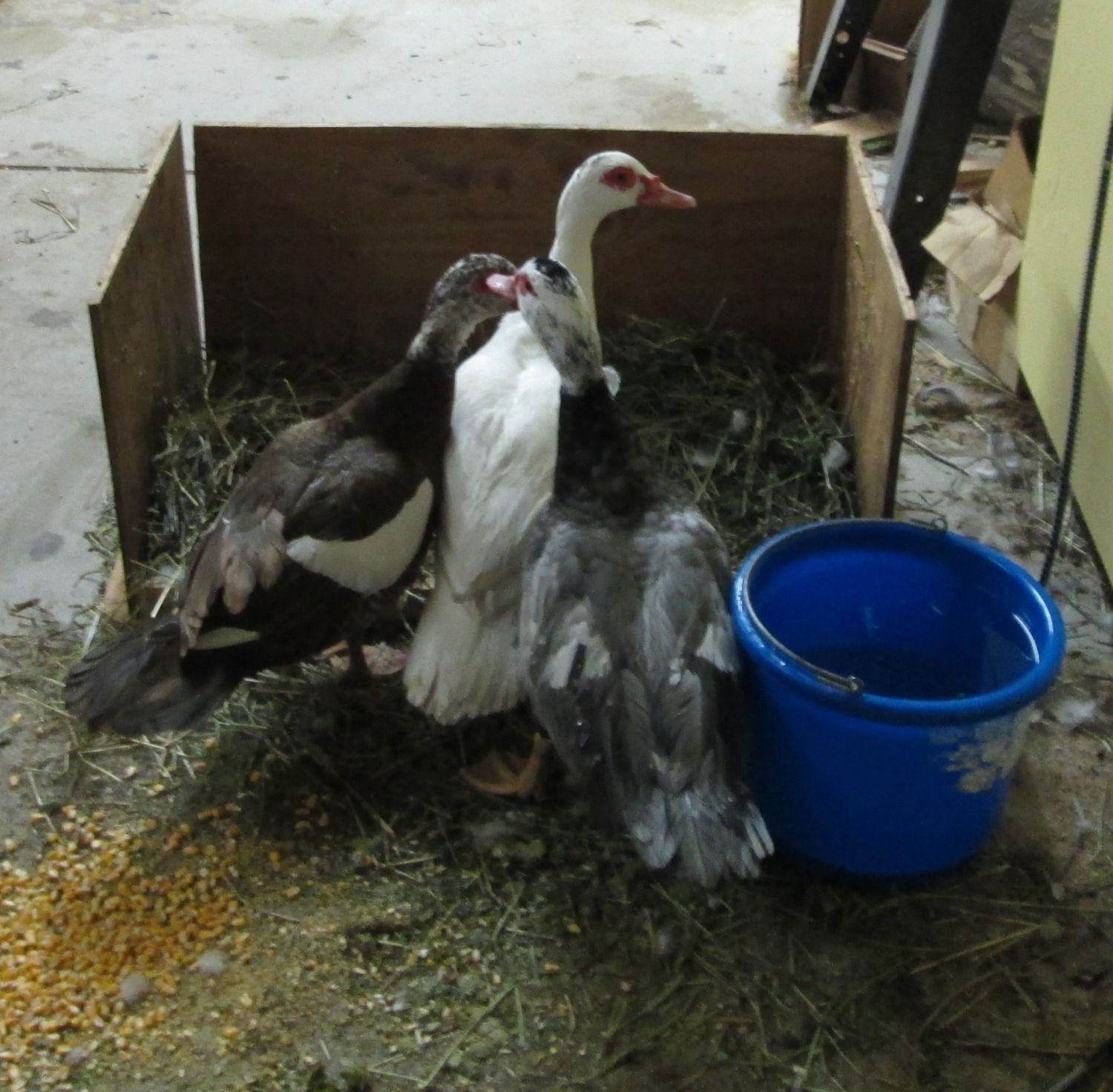 Adorkable, there can be problems introducing new birds into an establish group, but these two new ones didn't know each other, so basically three solo ducks were put together into one group. They look super happy together this morning.