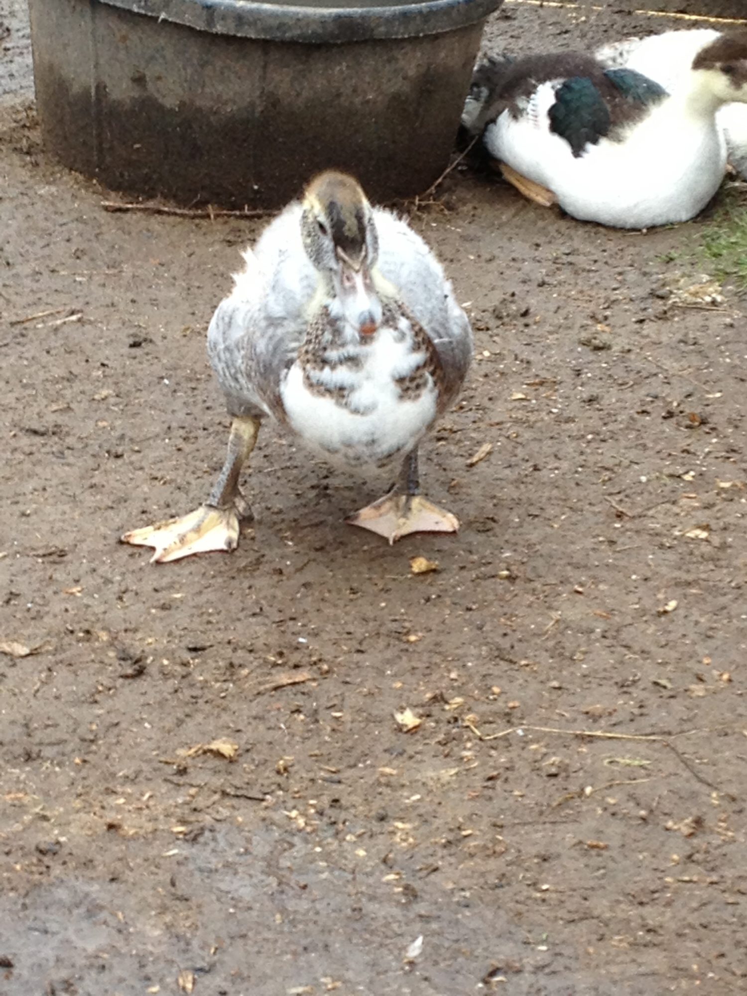 By 6-7 months they are pretty much adults in size, but they will bulk up, my drake who is just 1 yr is as large as his daddy but not as full through the body, the ducks also will widen some as they get older but are usually full size by 6 months.At what age do muscoveys stop growing??