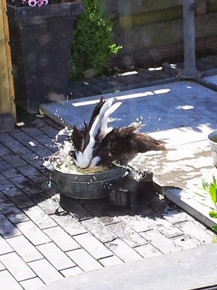 Here she`s having fun with her waterbowl. Doesn`t matter there`s a lake in front of the house