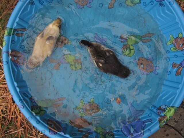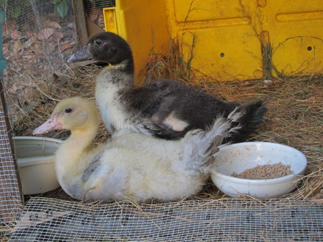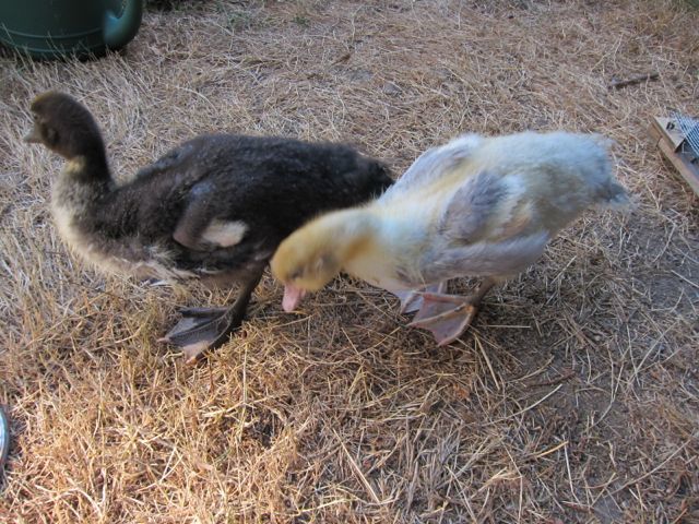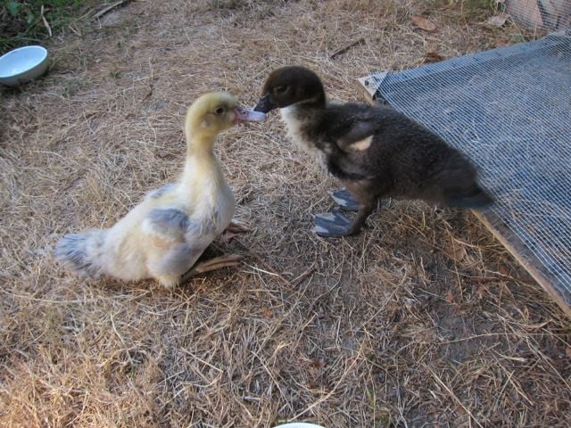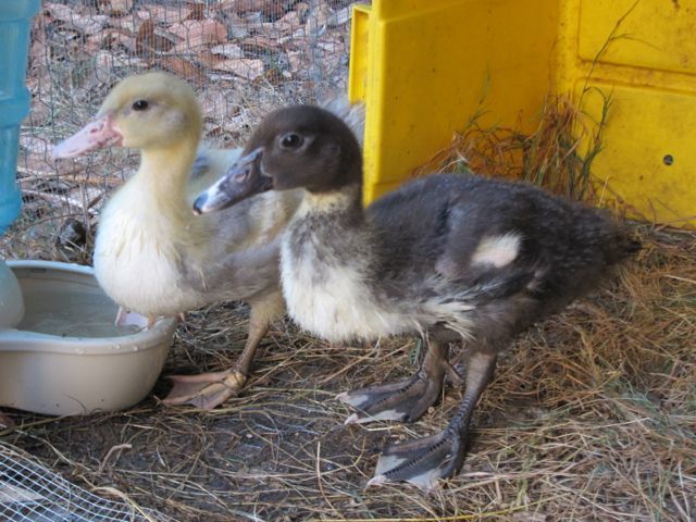 Front view would help, but looks like yellow is duck. both seem to have the football shape but even at 5 weeks they can fool ya, if you have a drake it will really start to be noticeable in the next couple of weeks.I posted about a week ago with a duck vs drake question. Here we are now at about 5 weeks old . They are starting to feather out, the yellow one (who will be lavendar I think) a little sooner than the black one, but the pattern seems the same. The yellow one is still a little bigger in general but with smaller feet. Any opinions about gender at this point? Hoping for two ducks!