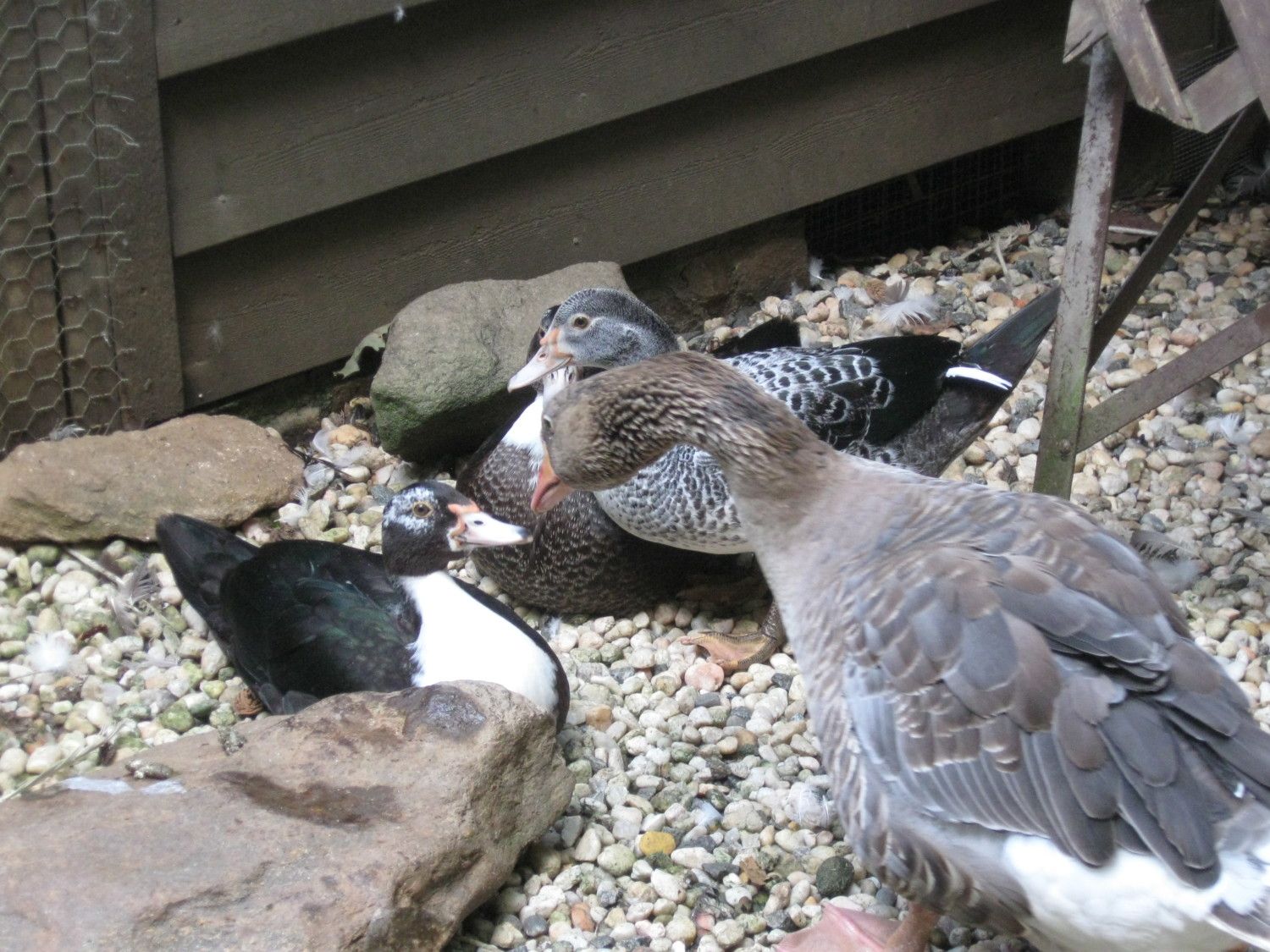 So nice of you to help as Muskus says very easy to get over run and no matter how much we love them that doesn't make for a good situation. Your Scovys are gorgeous and it is fun watching them change into their many colors and patterns.The guy I got them from lived next to people who were advertising on CL that they would take any and all unwanted barnyard animals. Then the township found out . . . and came in with vans and trucks and hauled most of the animals away. The muscovies escaped capture apparently and took the place over. These were hatched in a goat shed on this guy's property - he didn't want them going back over and continuing to breed so he contacted me (he tried to talk me into taking more, lol, along with a few crested Rouens). I had to say no - I don't want to end up in the same boat as his neighbor. But I did help him find homes for them.
