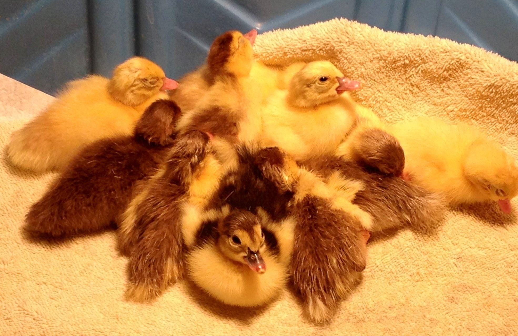 I'm only guessing, going by the foot/leg size you might be right???Sorry to bother you guys again. I'm still trying to figure out the gender of my ducklings. Now we're at 6 1/2 weeks. It's looking like the black one might be a drake. He's a little bigger overall with bigger legs, beak, and feet. Was hoping for two ducks, but looking more like a duck and a drake. Opinions? I really appreciate your replies!![]()