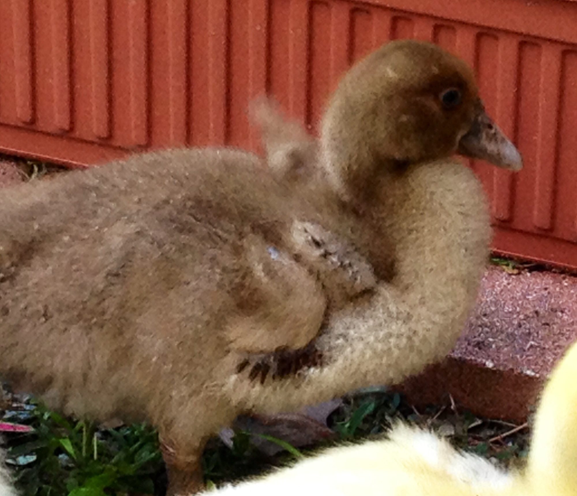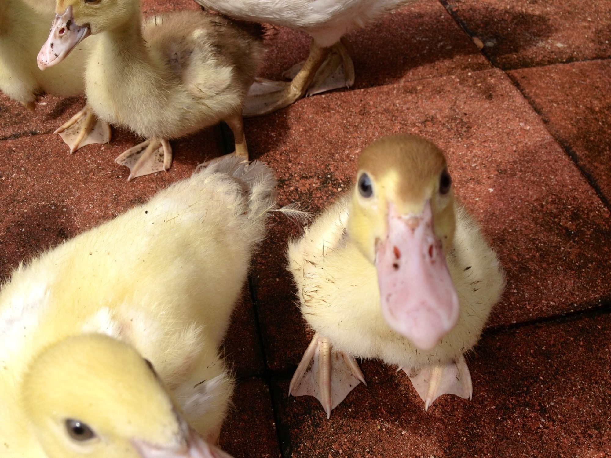 That's what she does! I'm starting to see a size difference in the babies but trying to compare them can make you dizzy as fast as they move!I have noticed my ducks are much less tolerant of the babies than my drakes they pretty much will ignore them but the girls will grab tail feathers every chance they get.