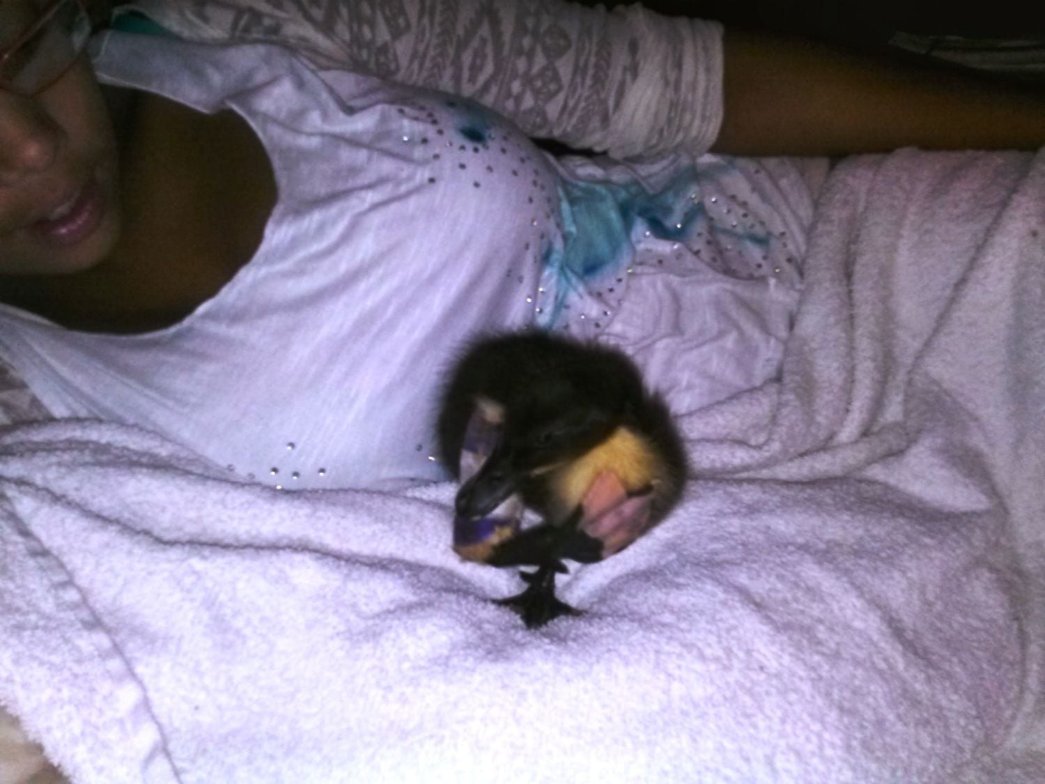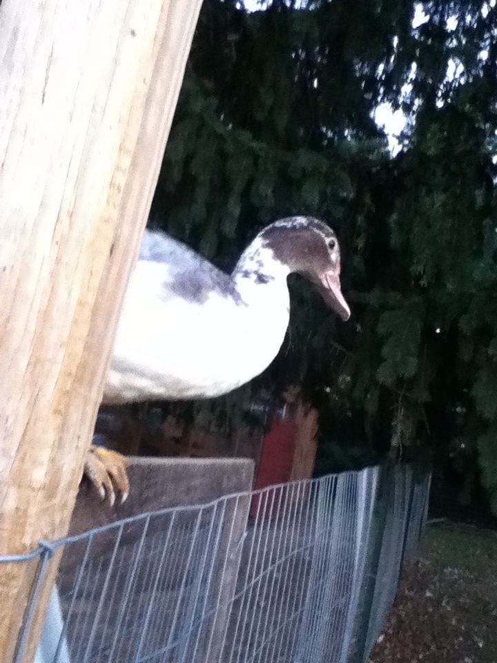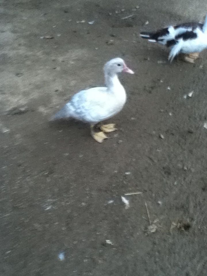 Here is our Cream Buff Muscovy. It used to have a brother or sister, but sadly it got a horrible limp and had to be put down.