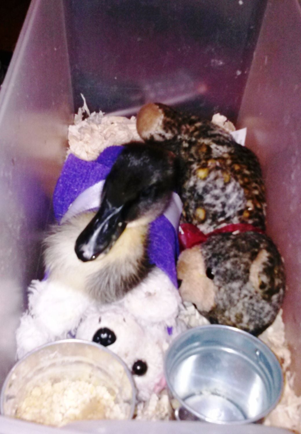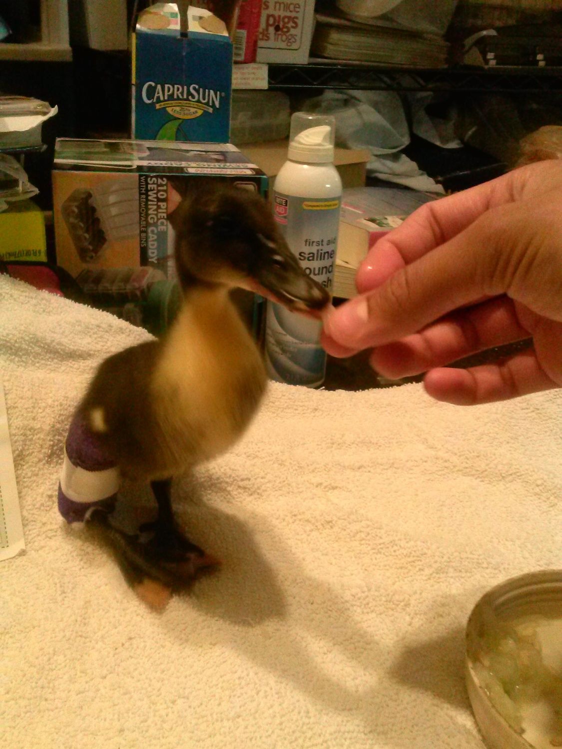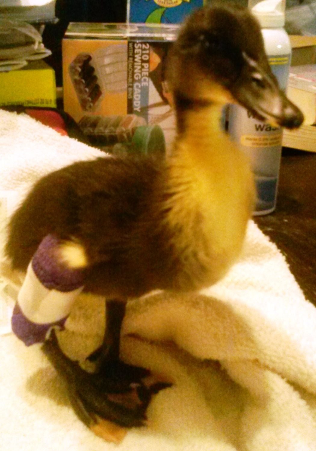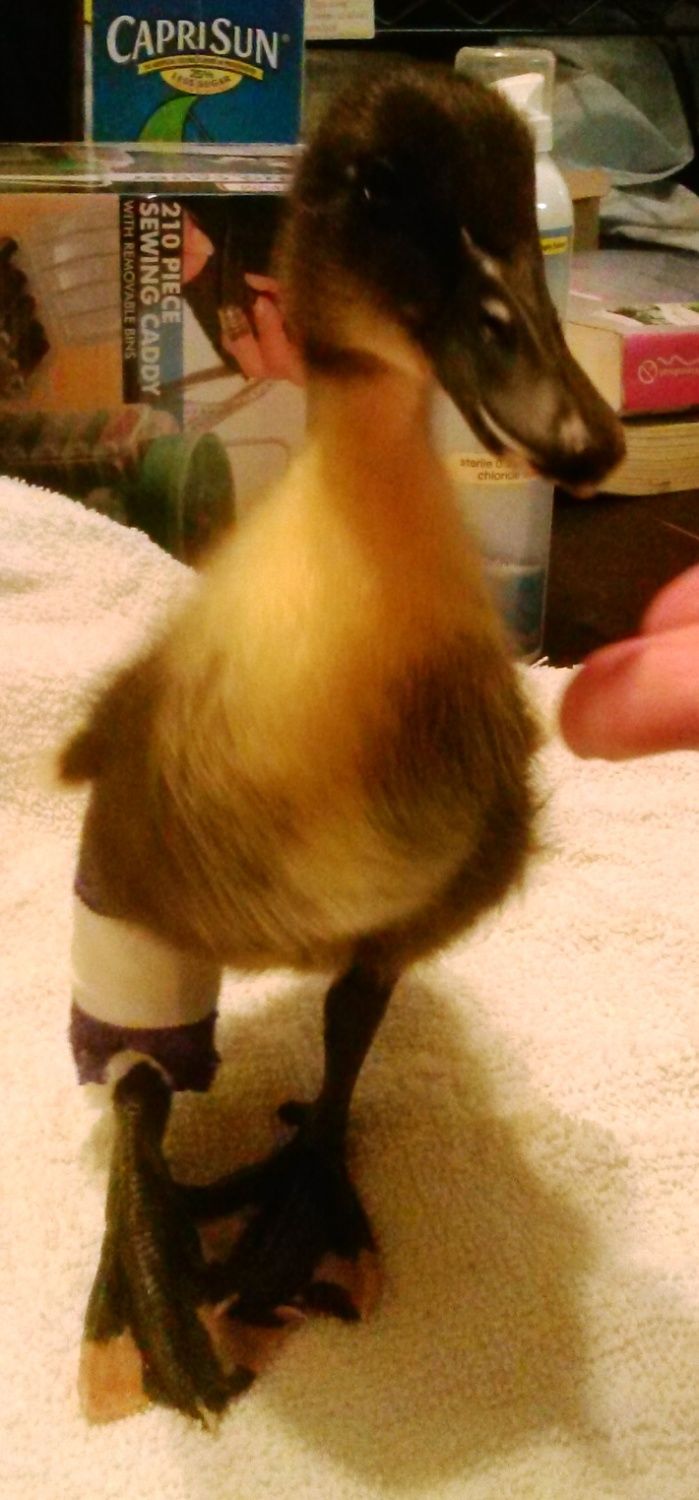 They had several breeds of ducks running together so ?? Took peeps splint off. He's still tripping over his foot a little bit. Seems to be mended though( putting full weight and stretching). See how it goes from here.