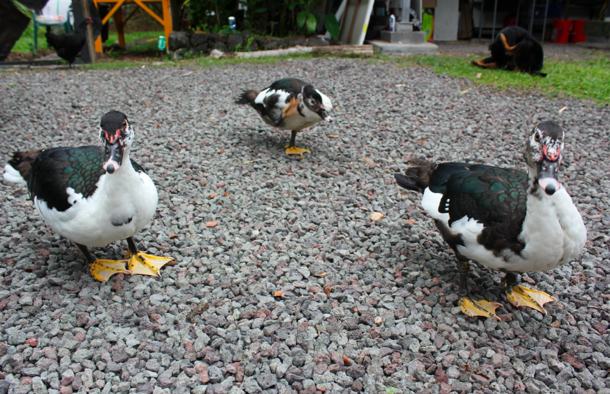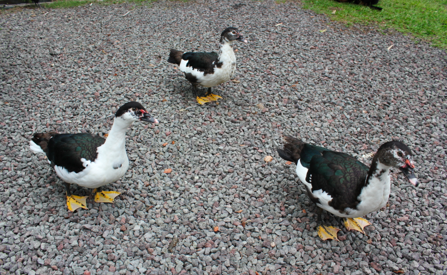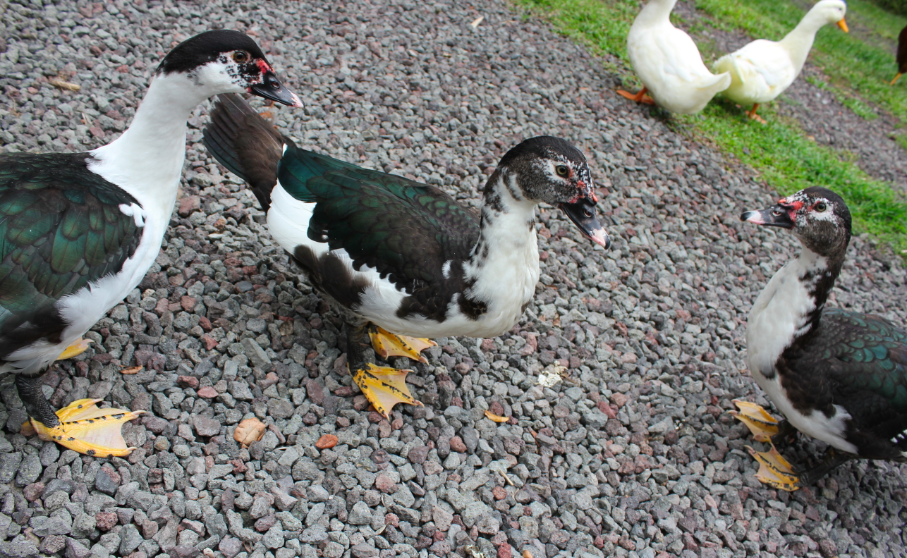 Anyone capable of helping to figure out the sex of these scovies? Around 4 months old I believe. 2 look alike more than the other, but the 1 (with the whiter face), while a bit smaller (was the "runt" of the clutch, according to the guy who sold em to me), seems to be the most dominant/aggressive amongst the 3 as well as the 2 pekins that grew up together with this group.
