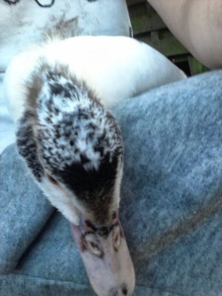 But no fear my DD got two new Muscovy's Sunday the white with the black spot and the speckled one. They were the smaller ones in the flock. $5 for both. So if any one in SE Michigan looking for Muscovy's they had from new hatch lings to this size believe approx 4 mo. BOGO $5