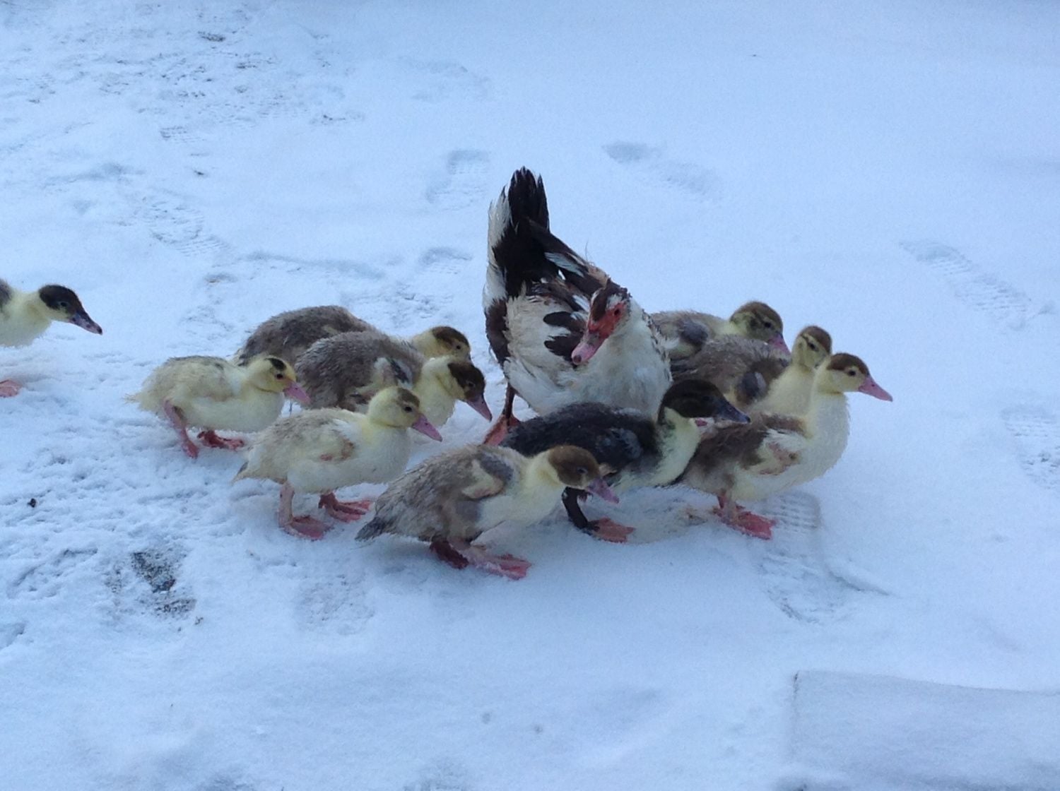 I wouldn't let them out and leave them, I know this year one of our members had a gosling attacked by Magpies so maybe not a good idea yet. I was mostly thinking about getting the acclimated to temps. didn't realize you have those preds to worry about. Once big as mama and feathered in completely they should be fine, they can't carry off adults Muscovy's can they?I am still scared to let them out without me watching. They look so baby like with their fluff, but they are almost as big as mom.![]()