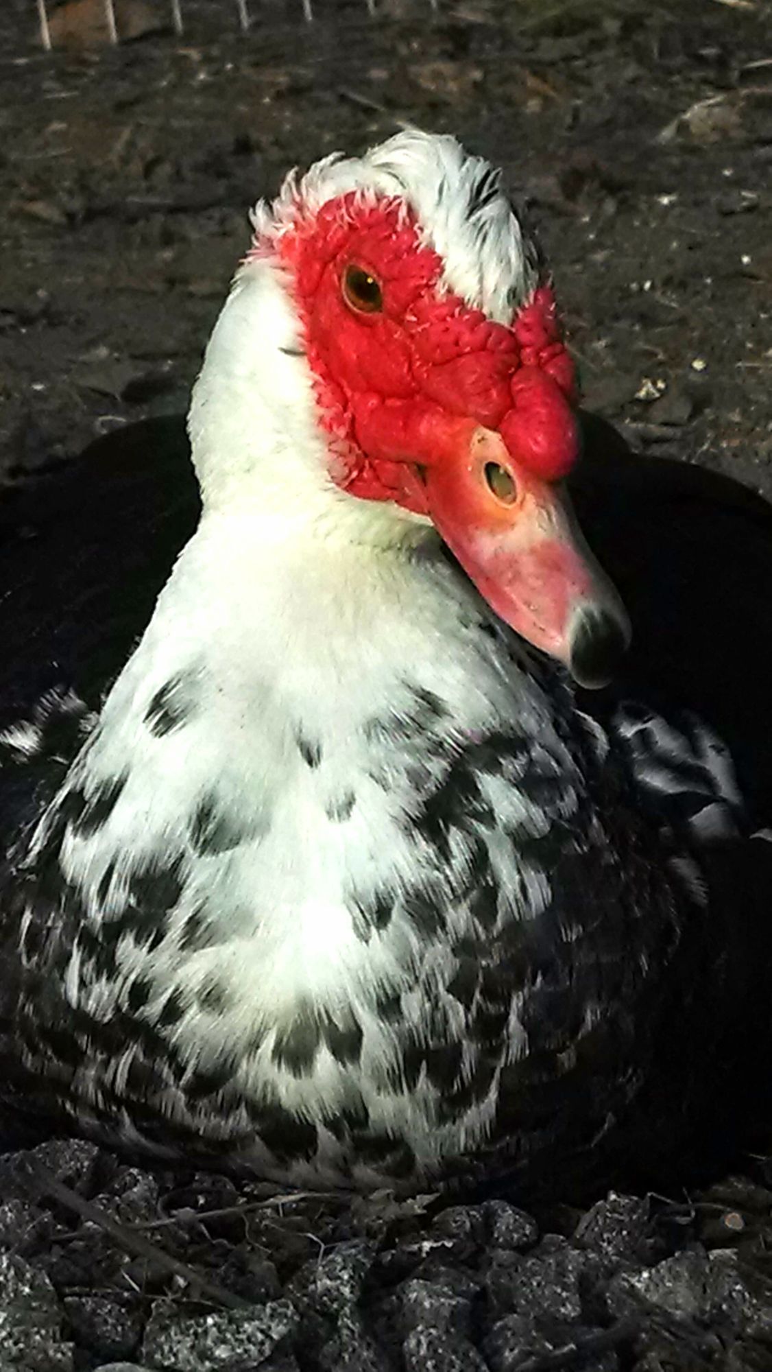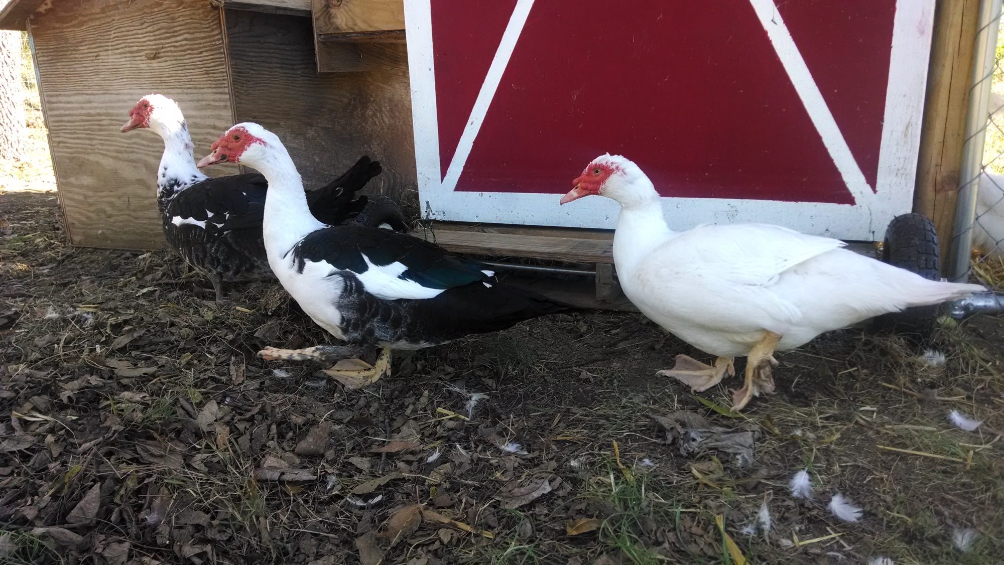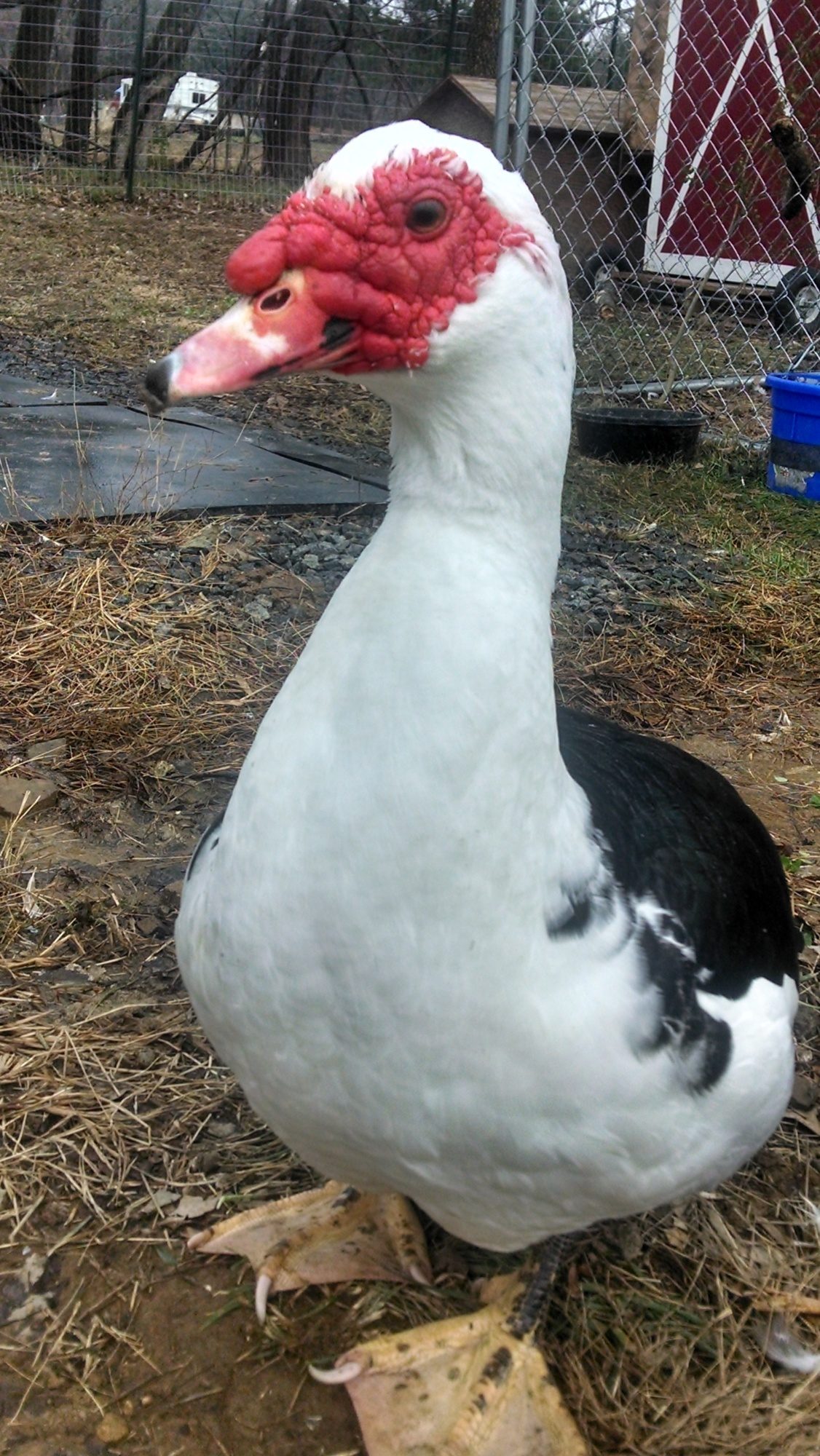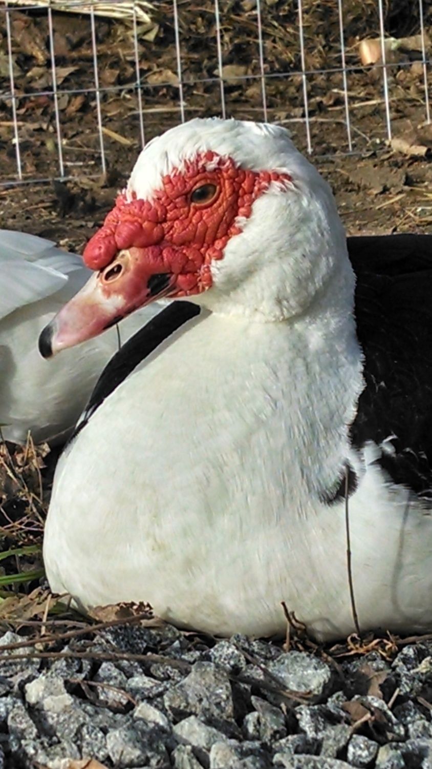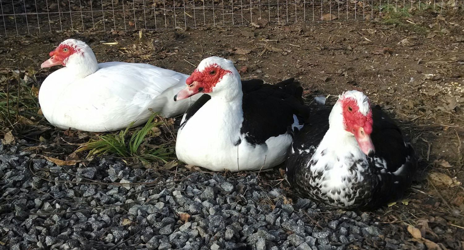We have had the boys since the summer. Friends of ours were moving so we took their 3 muscovies and 11 chickens. I believe the muscovies are a little over a year. The boys are still learning to trust me and I have not been able to catch them yet to trim their toenails. They will let me pet them as they walk by rather quickly so that is a start!