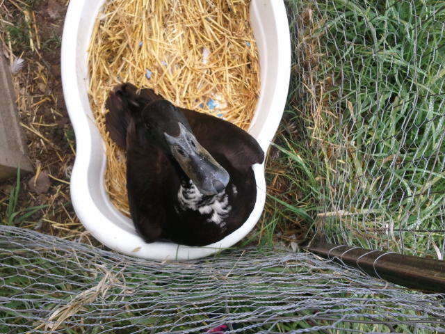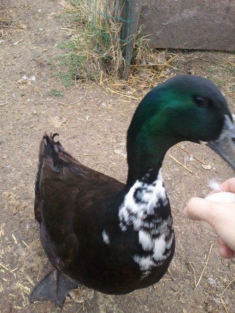 That would be great since I only have the one Muscovy. I saw a craiglist ad from a guy over in Arkansas that had lavender muscovies and was selling some of the ducklings. I would love to get a few of those. But, I'm a MS wildlife rehabilitator and I limit myself to waterfowl and songbirds. I never know what how many birds I will get from day to day so I have to be careful that I don't overdue it. That is how I got my Smooshie! I grew up in FL where muscovies are all over the place and are considered a nuisance. I could not stand them. That was 17 years ago and within the last 3 years of me getting to love geese (especially Canada) and ducks, I still could not understand why anyone would want a muscovy as a pet. Then smooshie came into my life! She is the most personable duck I've ever had, and as a duckling, so quiet and calm even when she was by herself. This is her pic from last year when she was first given to me.