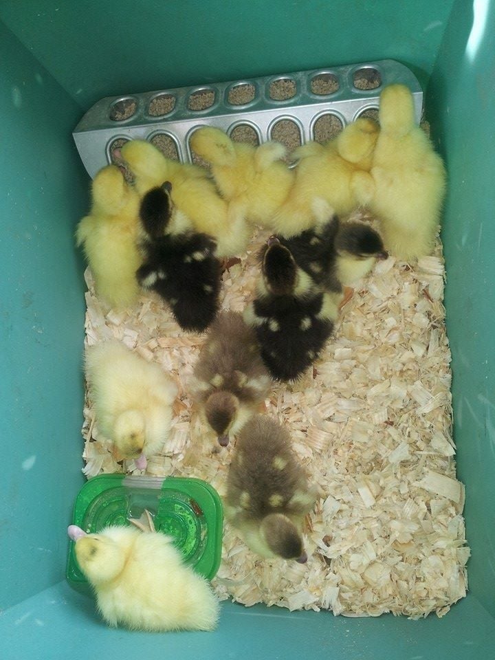 I found babies today! SO happy! I now have a box of epic cuteness in my living room lol I was shocked, I had contacted the person before, and she was selling all her muscovy eggs, but I didnt have an incubator. She doesn't intentionally let babies hatch. Well I asked one more time, and lo and behold, she had a mam show up with 12 babies last night! I bought them all...