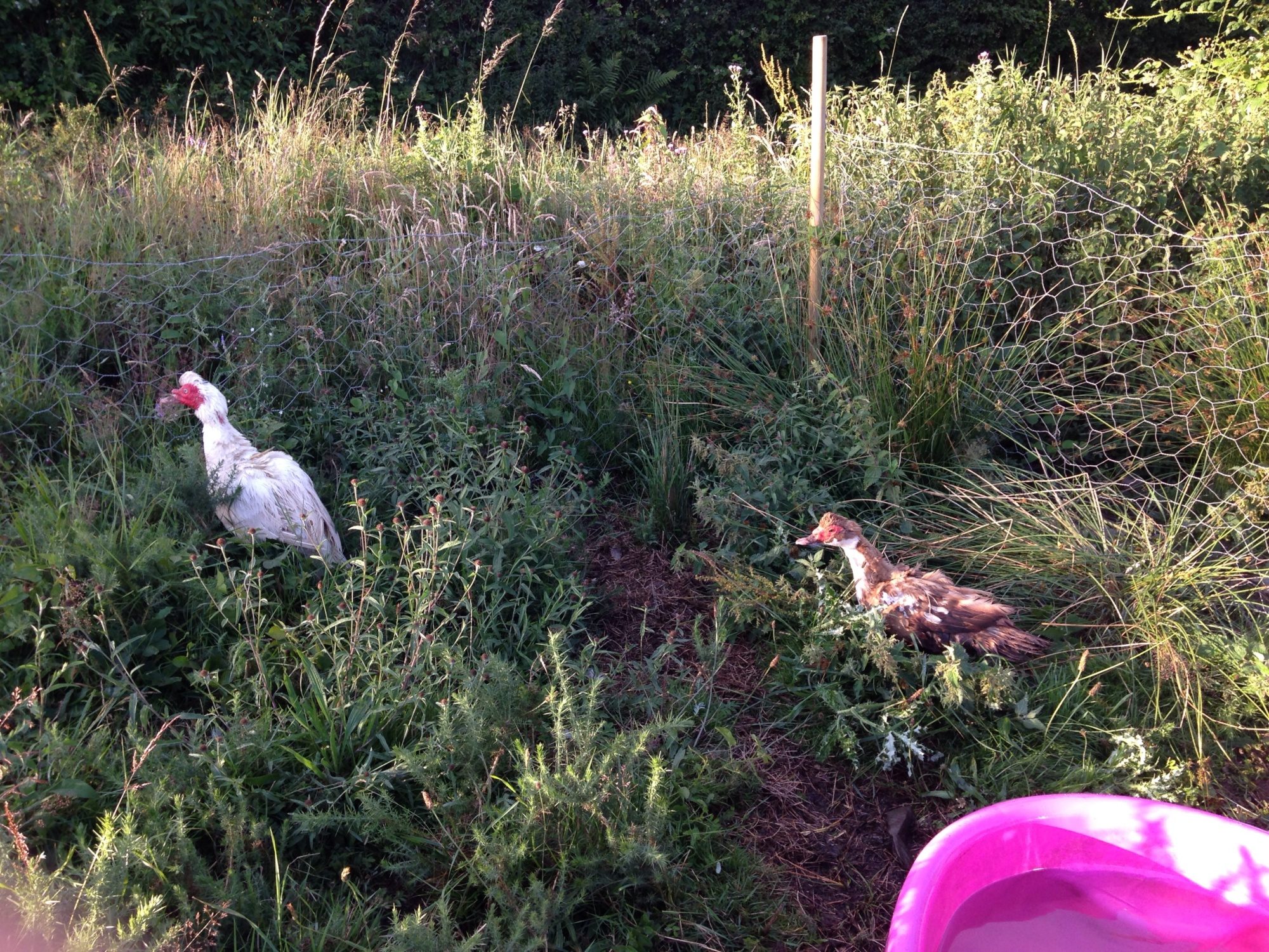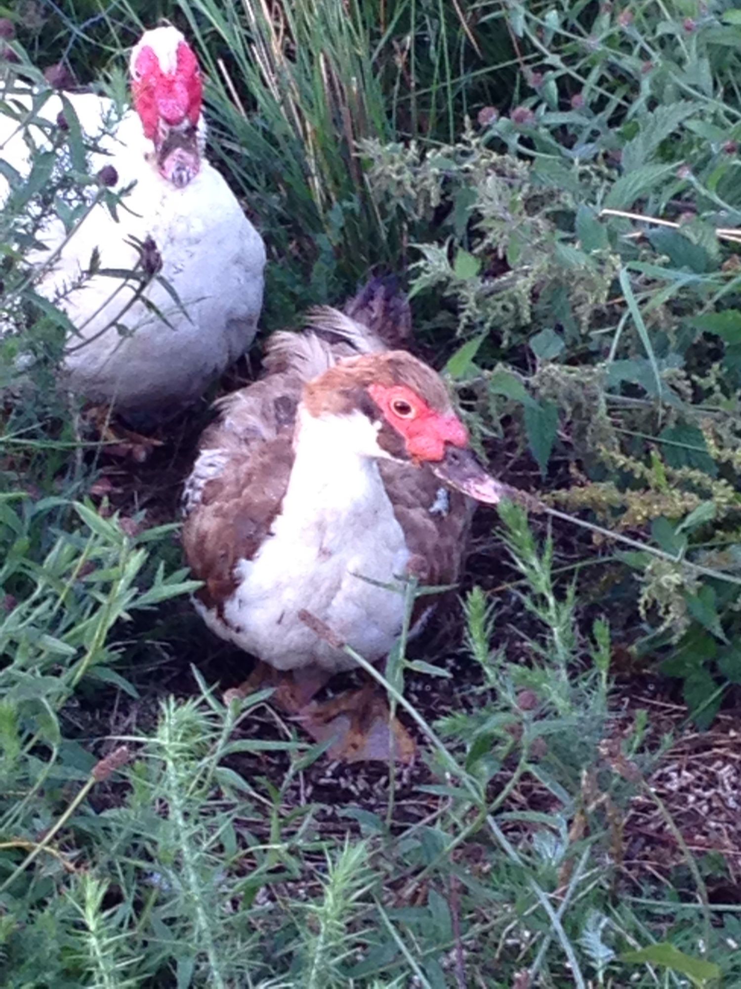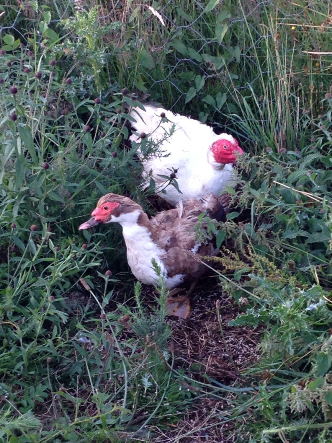 These are my first muscovy ducks that I got today we named the white one Donald and the brown and white one Sylvia