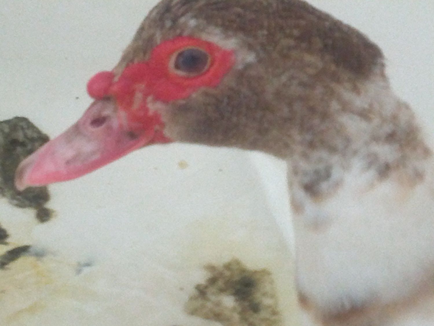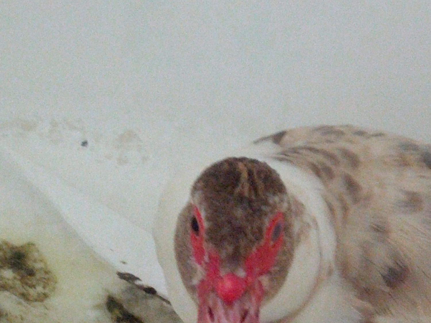 My muscovy hen Jadzia has something wrong with her eye, I am not sure what. She keeps the inner eyelid(?) up most of the time so it looks cloudy and periodically has her outer eyelid up too. It does not seem swollen or foamy. I gave her a warm bath and then let her dry and kept her in over night. She seems to be eating and drinking well.
