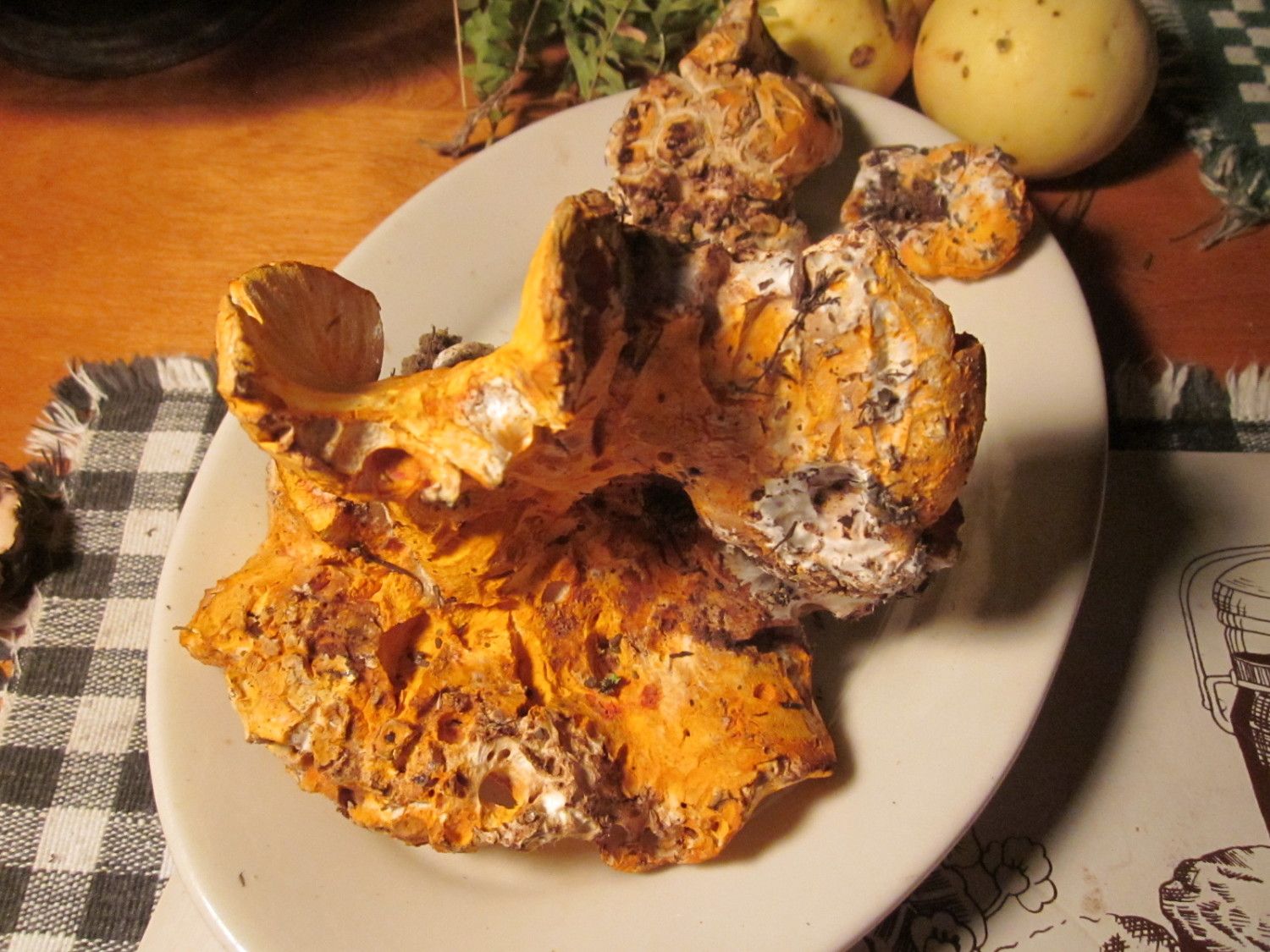 I need to bring my camera to work tomorrow! I was driving out and looked at a stump going out and the most beautiful sulphur shelf (chicken of the woods) is growing on it!!! Easy pickings!!! I'll photograph before I cut.