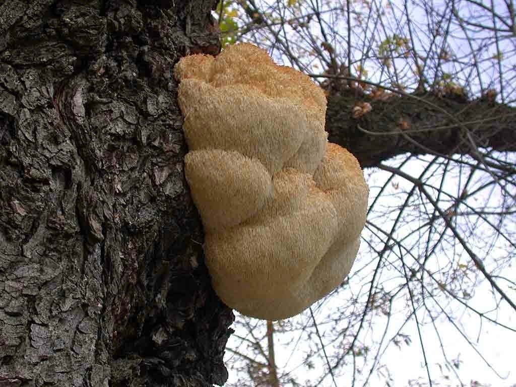 This is a Hericeum ericaceous or bears head or Lions Mane. I found it growing on Silver Maple. This is one of my favorite mushrooms for eating. It's sweet and has the texture of crab meat.