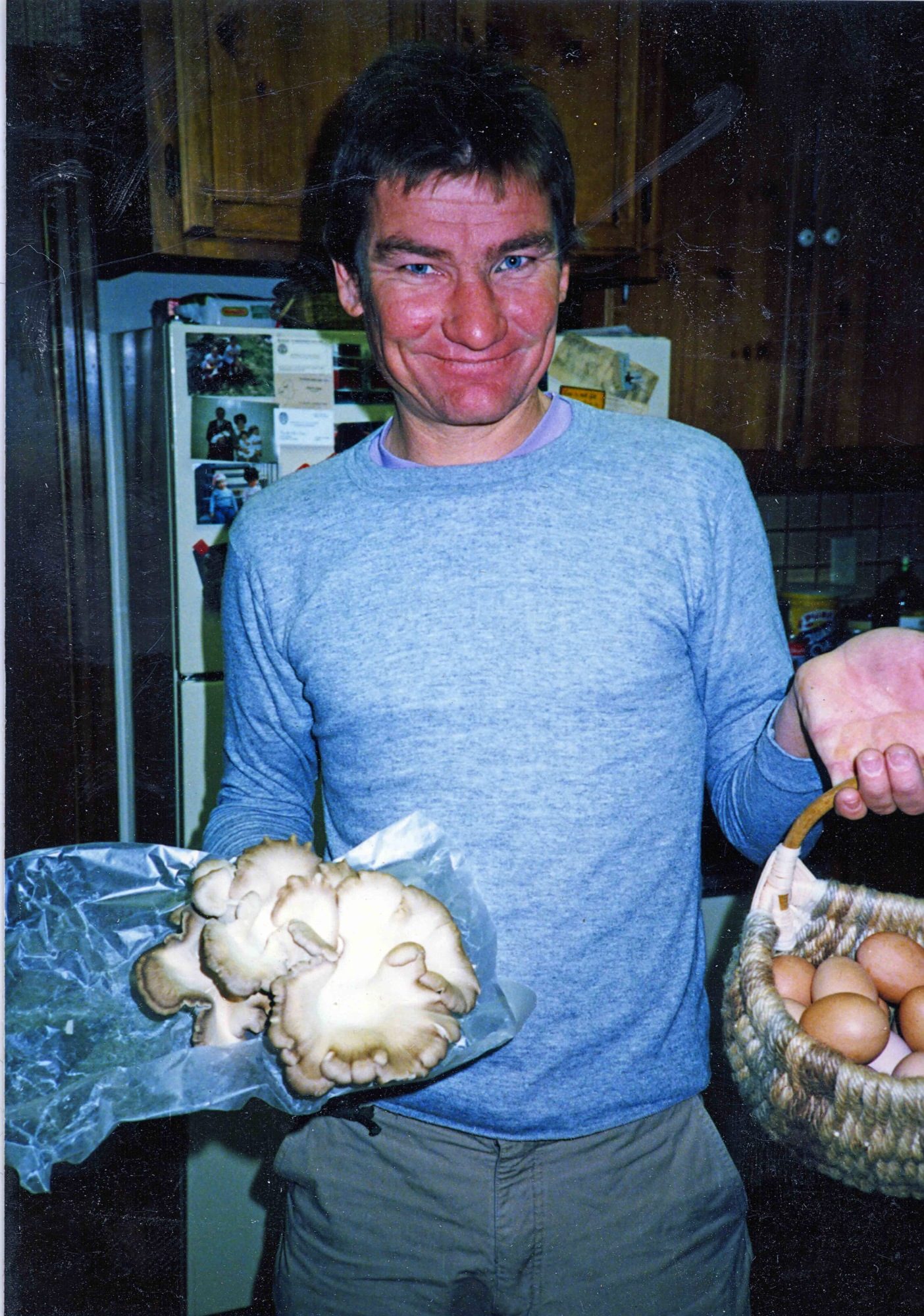 This is me about 35 years ago. I was growing Oyster mushrooms and had chickens too. My favorite breakfast is eggs with oyster mushrooms on sourdough toast.