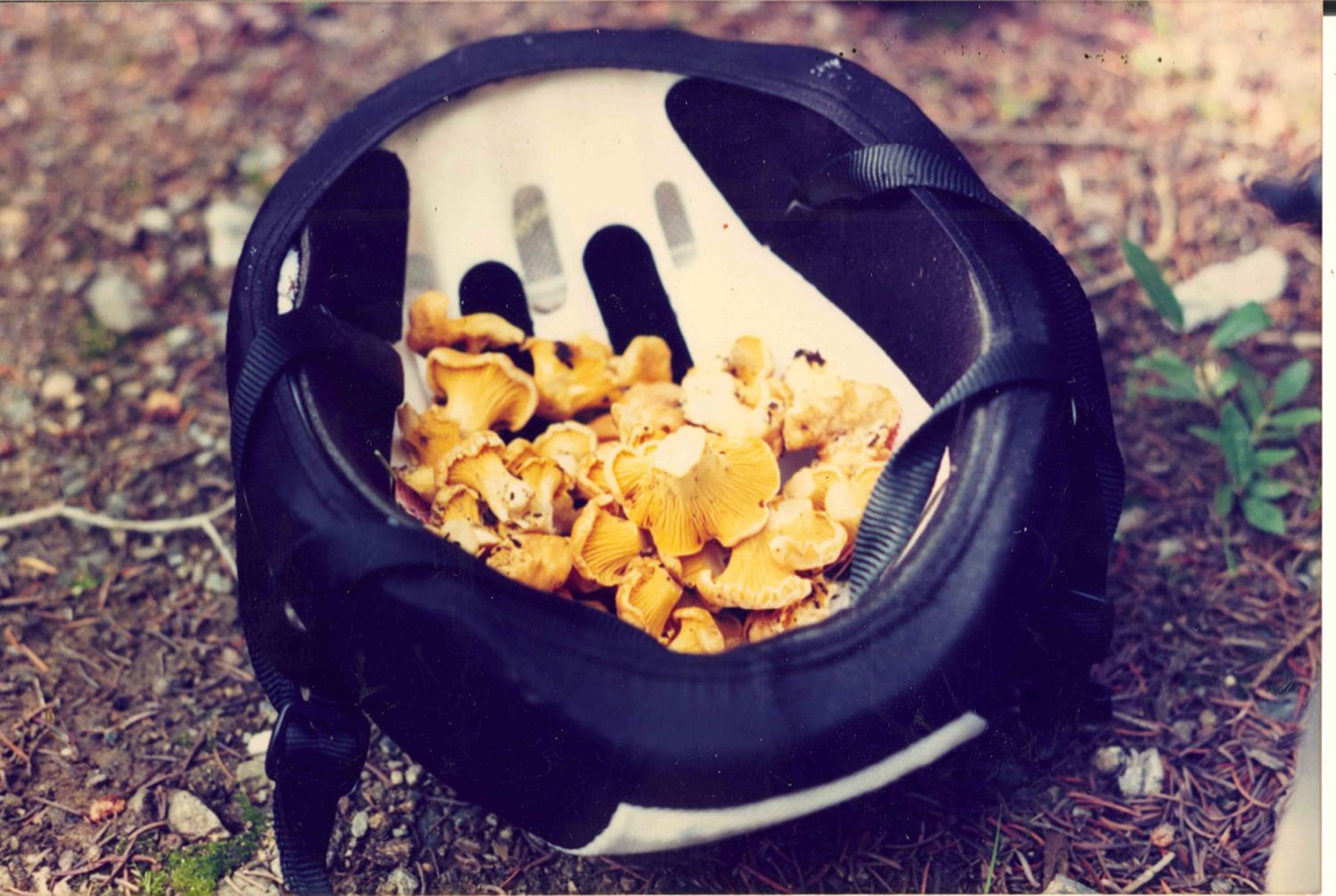 I was on a bike tour in the San Juan Mountains near Telluride CO when I found these Chanterelles. They were small but very dense and meaty. The helmet made a decent basket in a pinch.