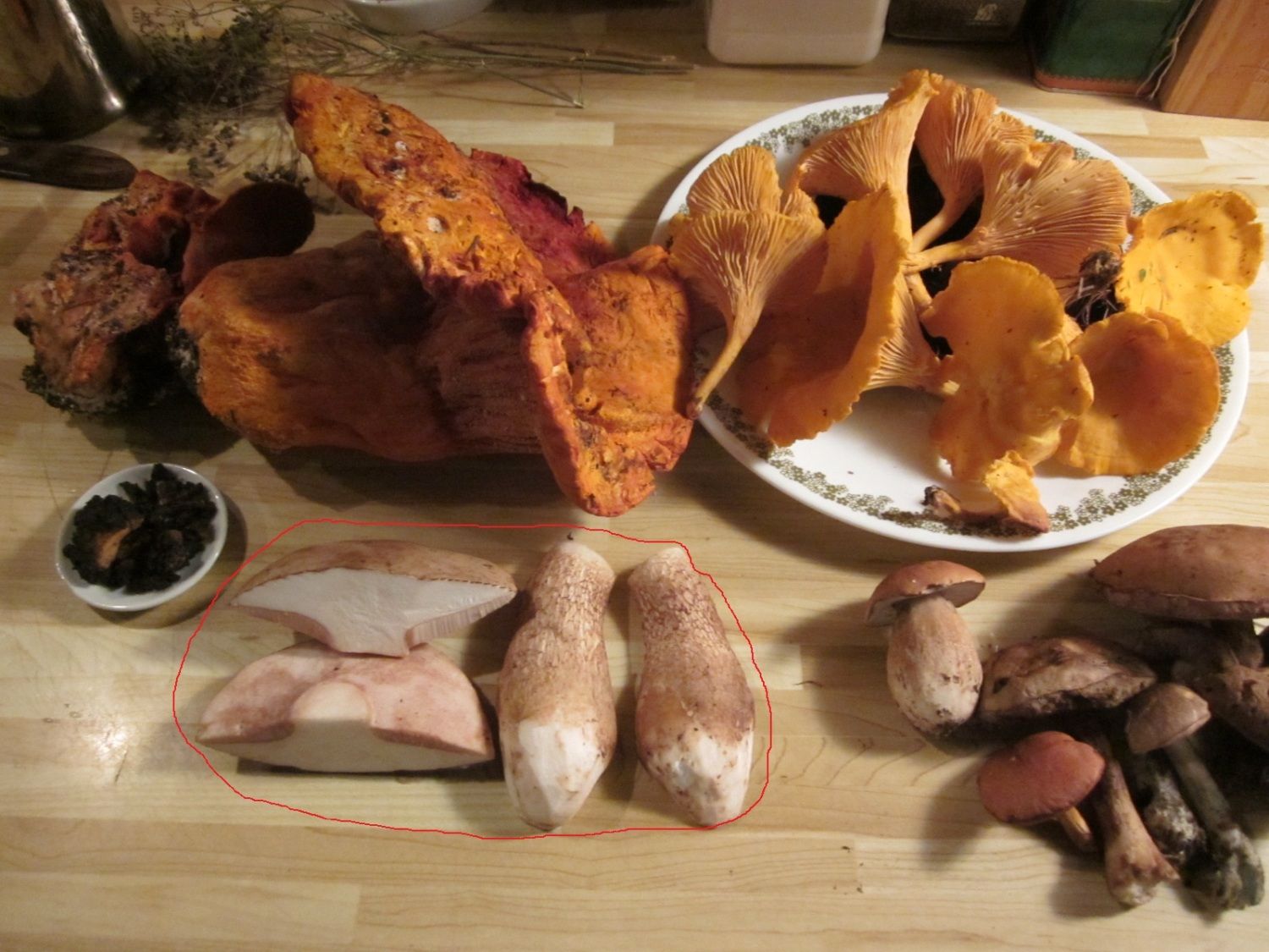 The one circled in red looked like Boletus but bitter taste suggests Tylopilus felleus. Too bad as it is in perfect condition.