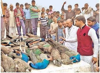 What in the world? What's the explanation behind those dead Indian Blue Peafowl?